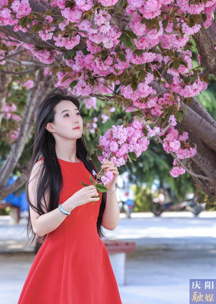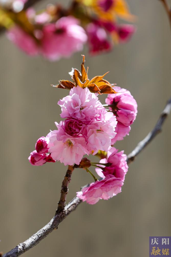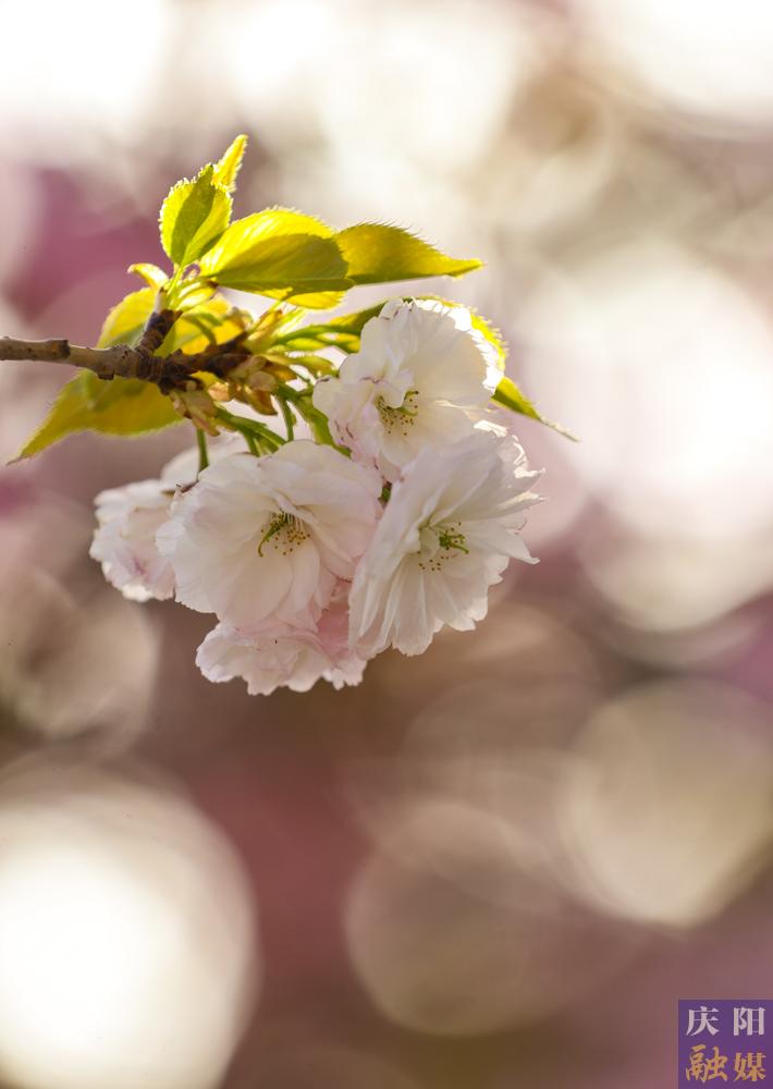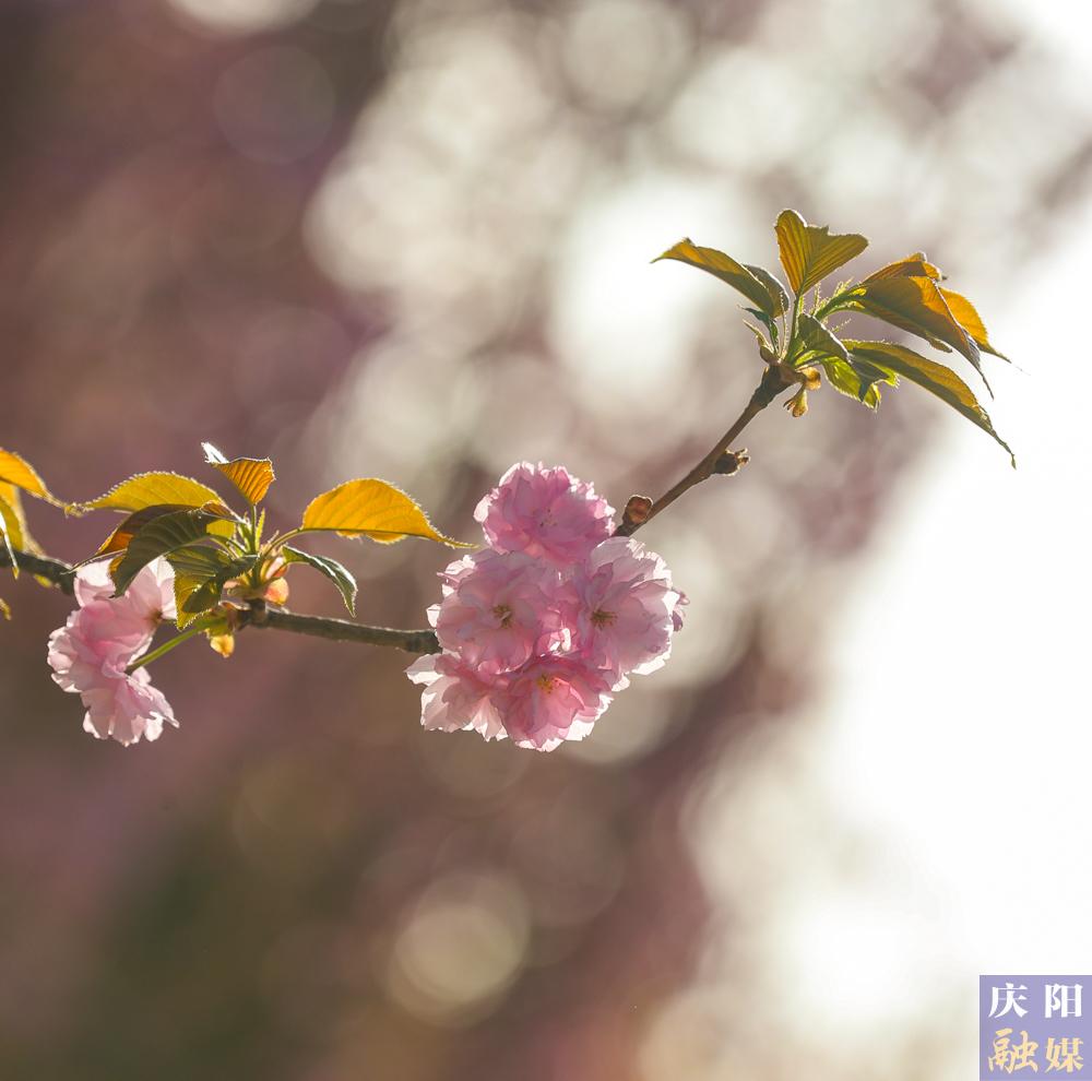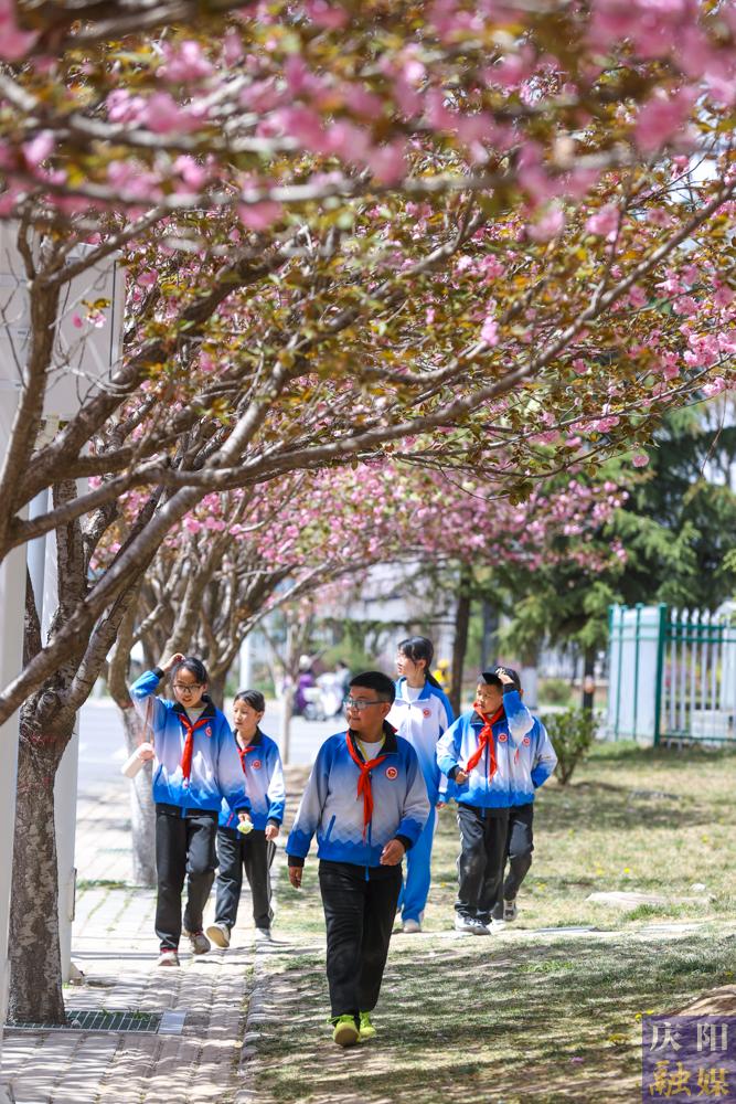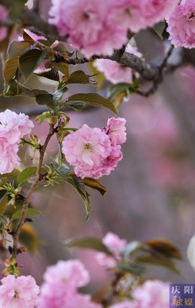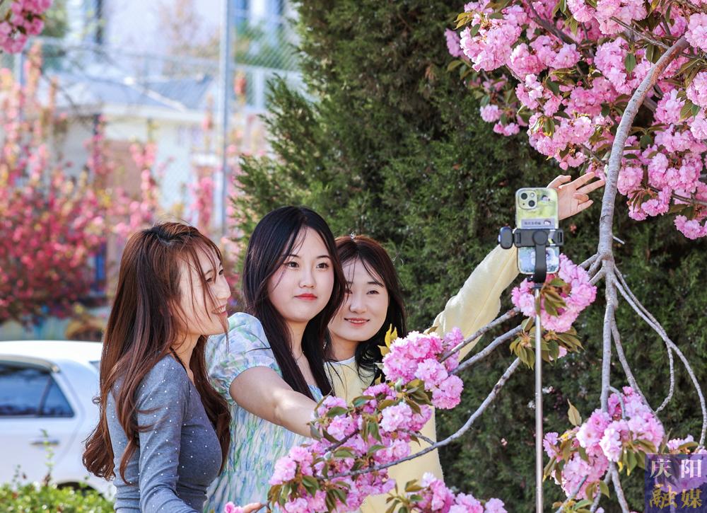 西峰區(qū)慶城東路櫻花盛開,成為市民賞花打卡的好去處。