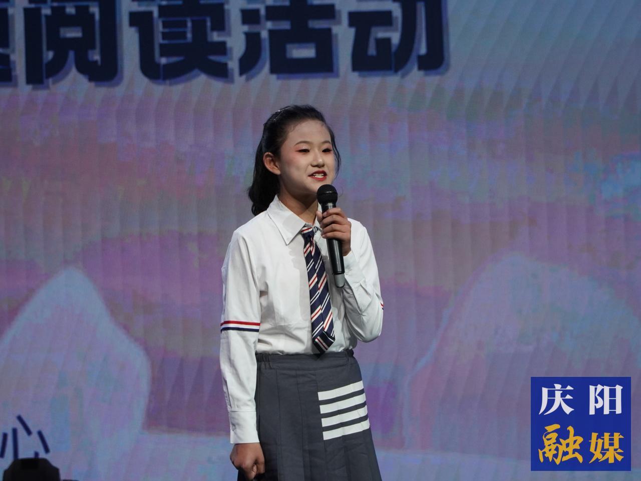 活動在詩朗誦《書頁里的光》中拉開帷幕,師生深情演繹經(jīng)典故事,詮釋閱讀對個人成長與文明傳承的深遠意義。西峰區(qū)周嶺小學(xué)校長常樓樓說,閱讀是學(xué)生成長的基石,他呼吁全體師生“多讀書、讀好書”,將閱讀融入生活日常。周嶺小學(xué)六(5)班卜涵玥同學(xué)宣讀《讀書倡議書》,號召家校攜手,共建書香校園。