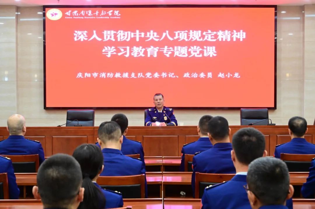 4月15日,慶陽(yáng)支隊(duì)黨委書記、政治委員趙小龍為2025年干部政治輪訓(xùn)班學(xué)員講授專題黨課。
