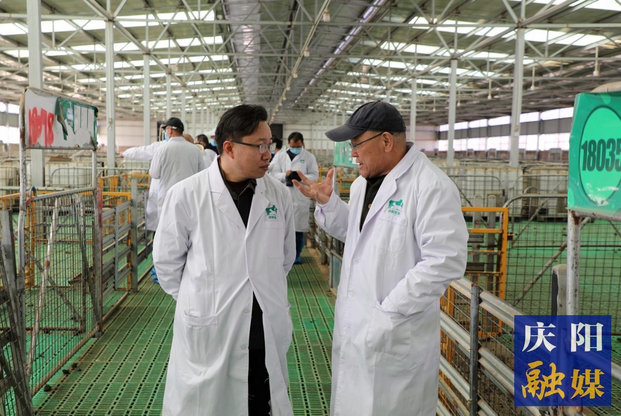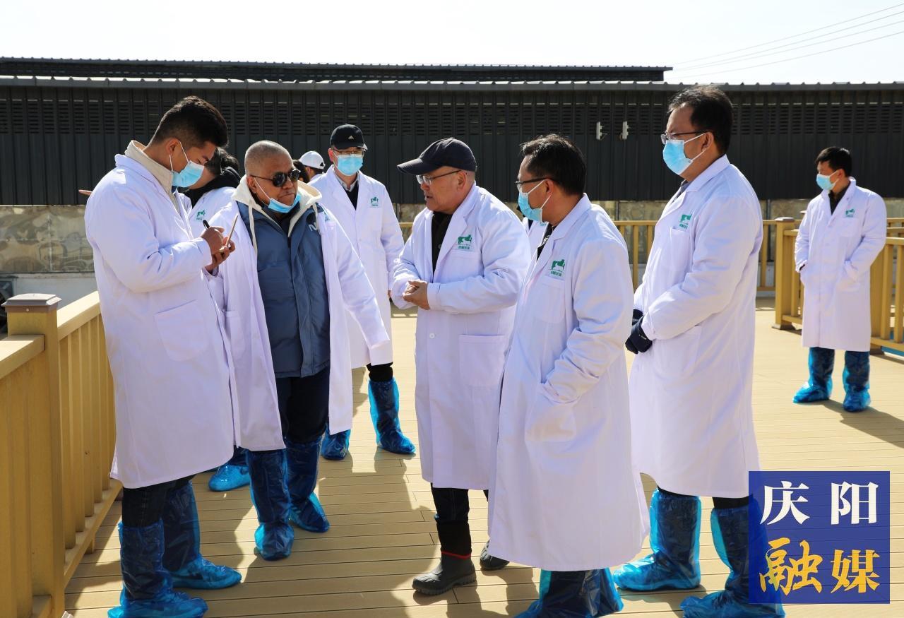 慶環(huán)公司負(fù)責(zé)人李國(guó)智和公司育種專家查看羊舍。