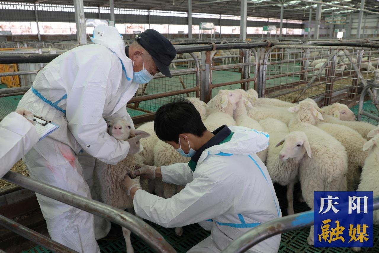 慶環(huán)公司工作人員在給羊只做疫病防疫。