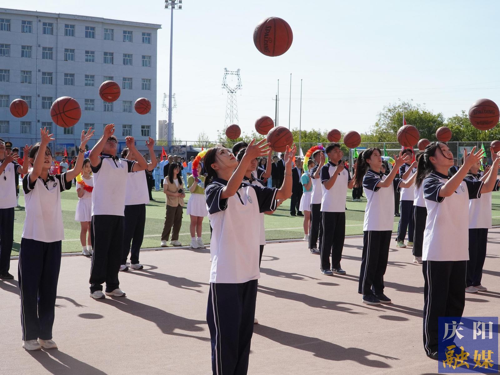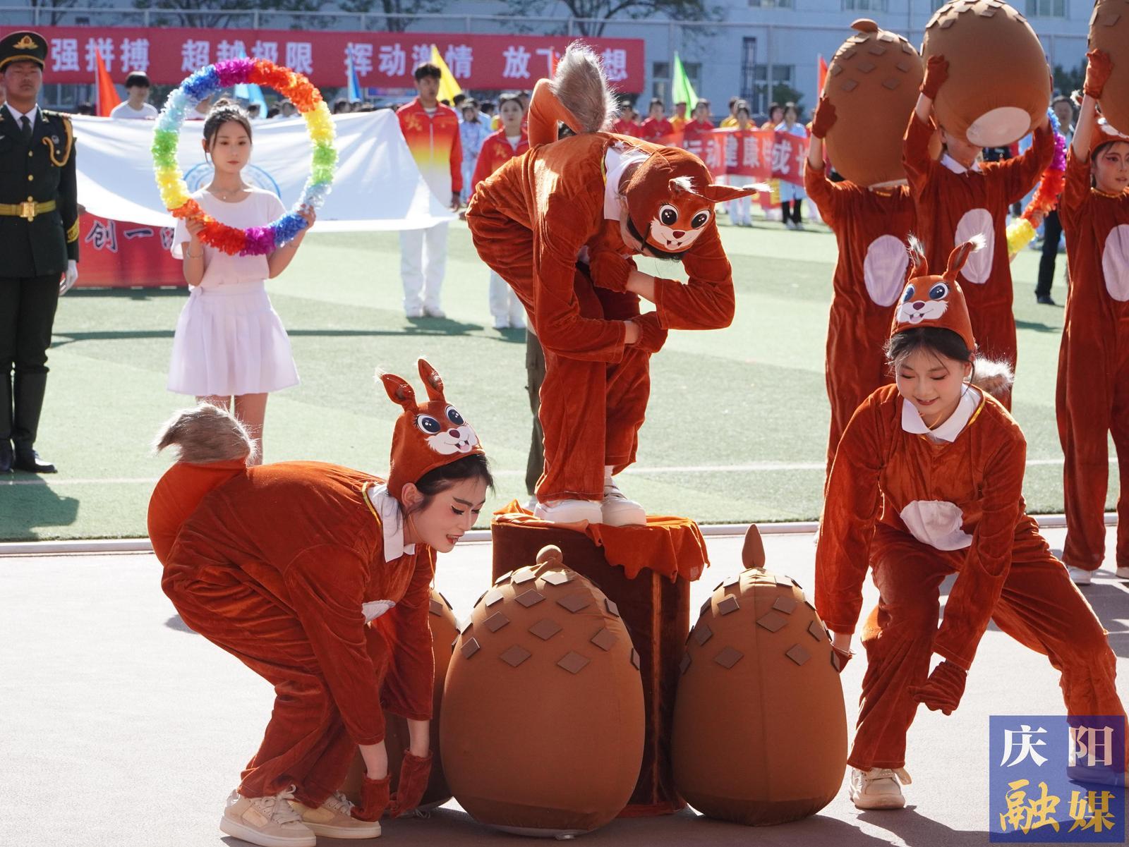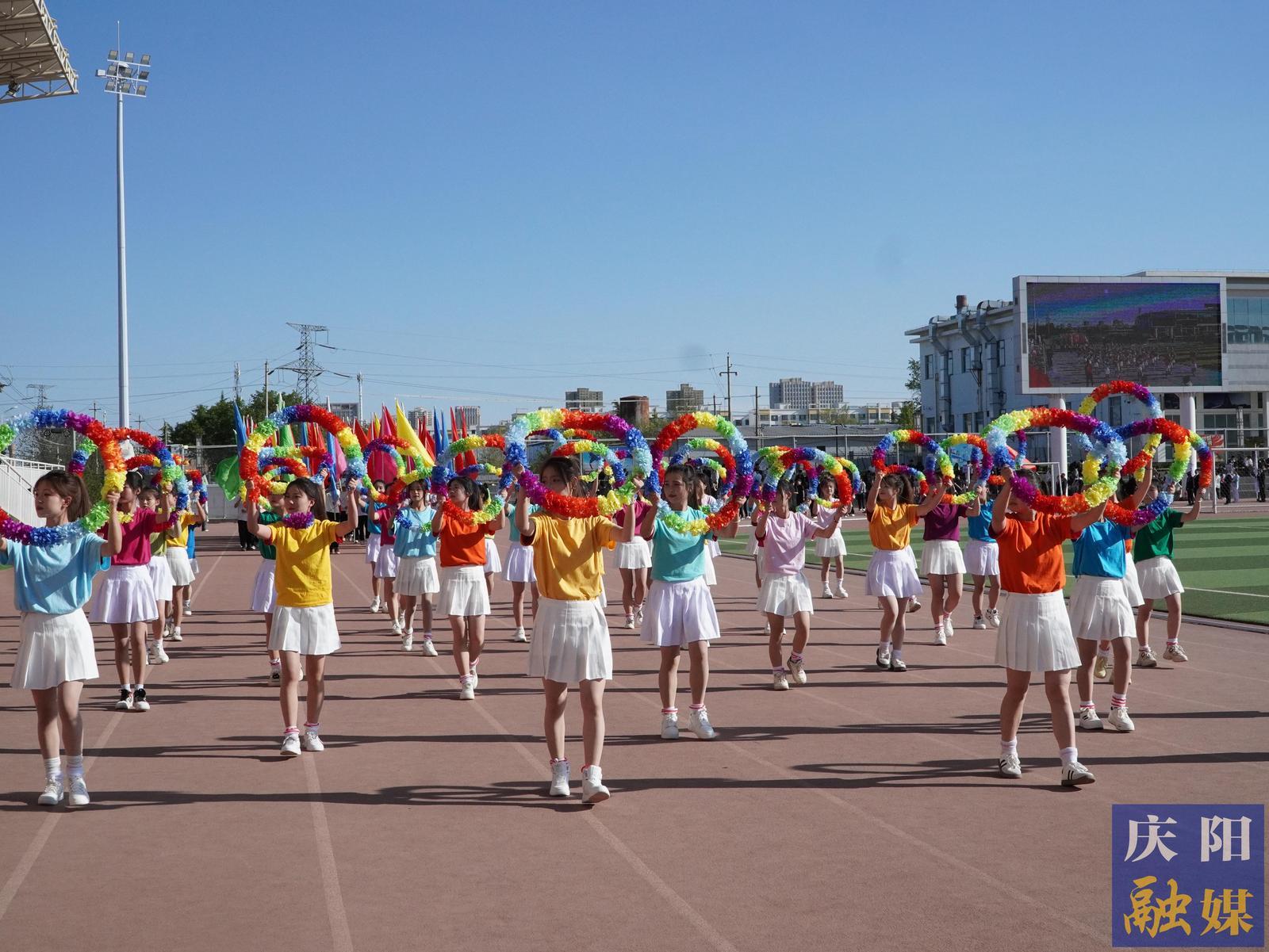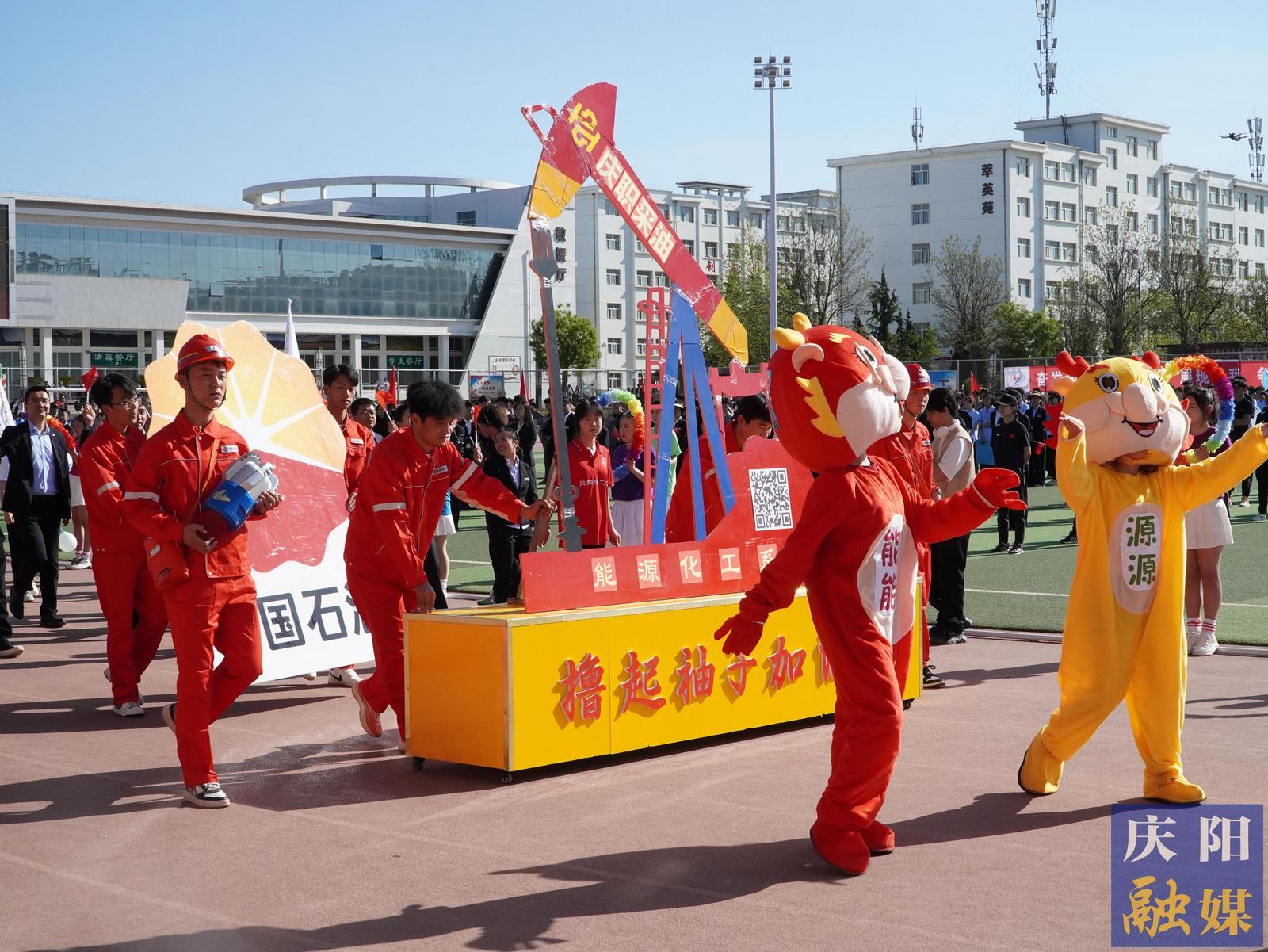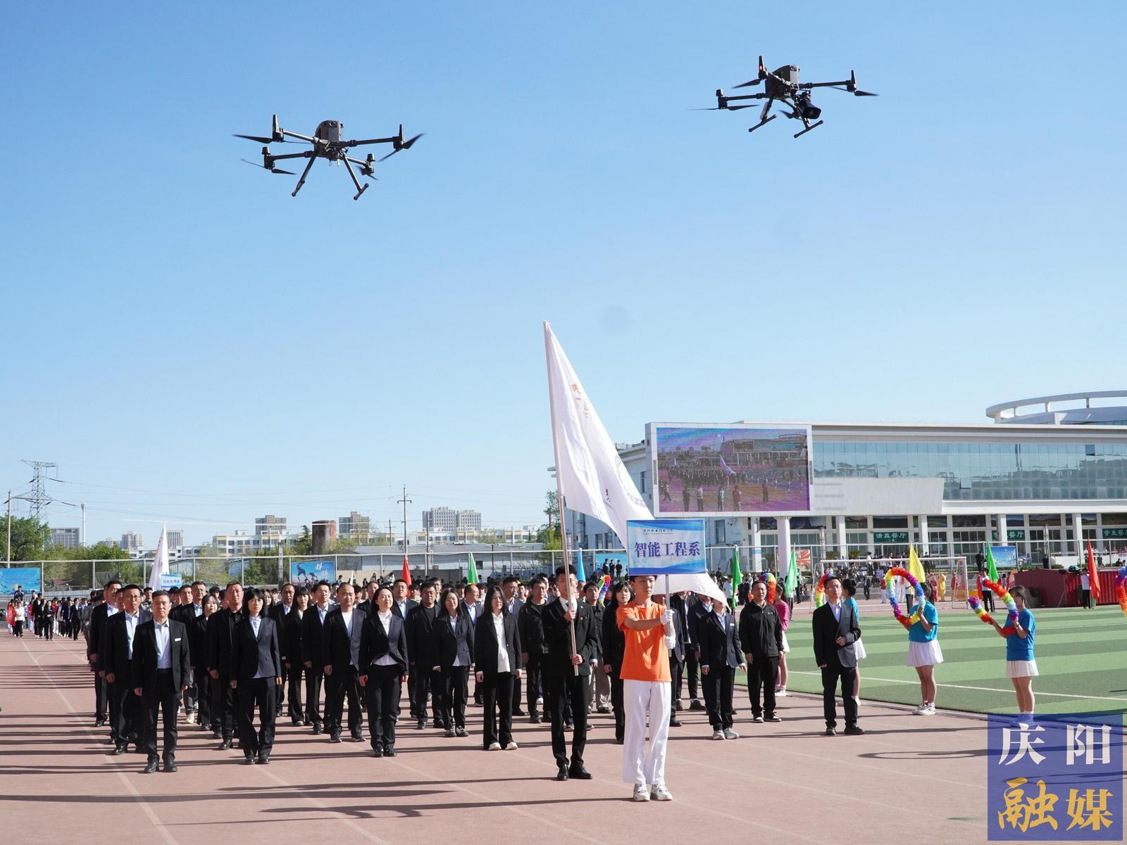 花束隊(duì)手捧繽紛花環(huán),如虹彩點(diǎn)亮賽場;彩旗隊(duì)揮舞64面旗幟,似流云涌動青春。裁判員方陣步履堅(jiān)定,以專業(yè)與公正為賽事護(hù)航;馬克思主義學(xué)院教師高舉立德樹人大旗,步履間盡顯鑄魂育人的赤誠;智能工程系師生攜無人機(jī)列陣,科技與創(chuàng)新之光照耀賽場;文化旅游系攜農(nóng)文旅融合藍(lán)圖,能源化工系高呼“我為祖國獻(xiàn)石油”,技師學(xué)院舞動籃球炫技,教育系賡續(xù)師道匠心……13支方陣各展風(fēng)采,將專業(yè)特色與奮斗理想融入鏗鏘步伐,匯成慶陽技術(shù)學(xué)院高質(zhì)量發(fā)展的生動剪影。