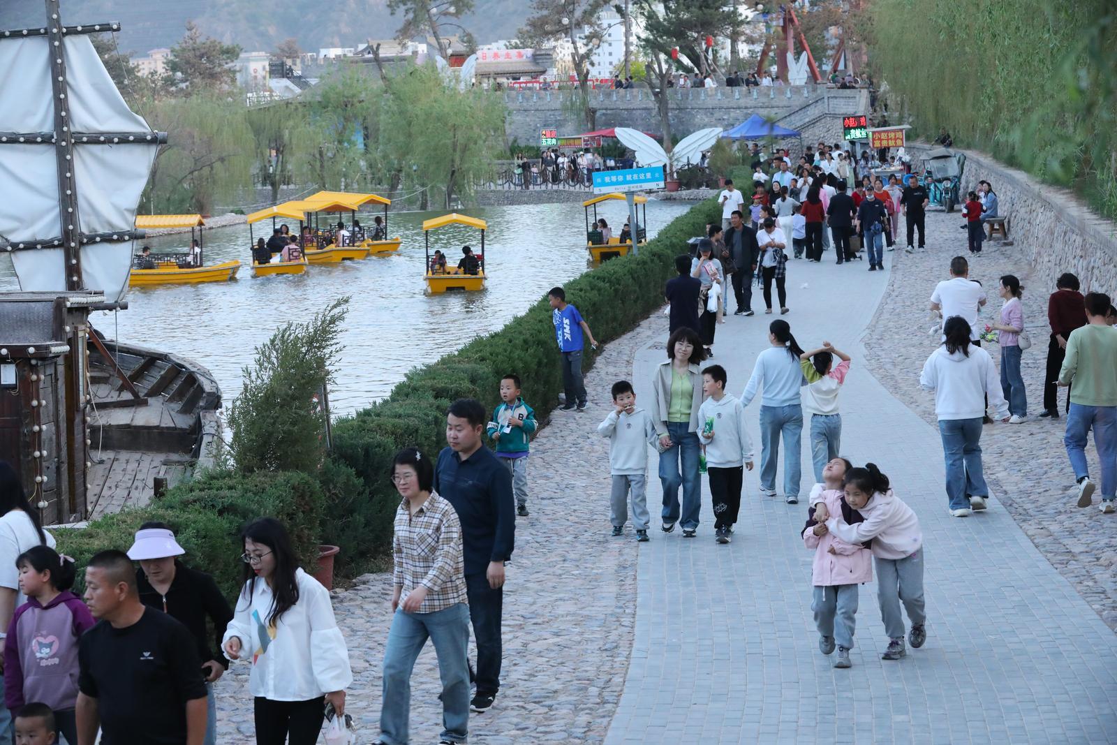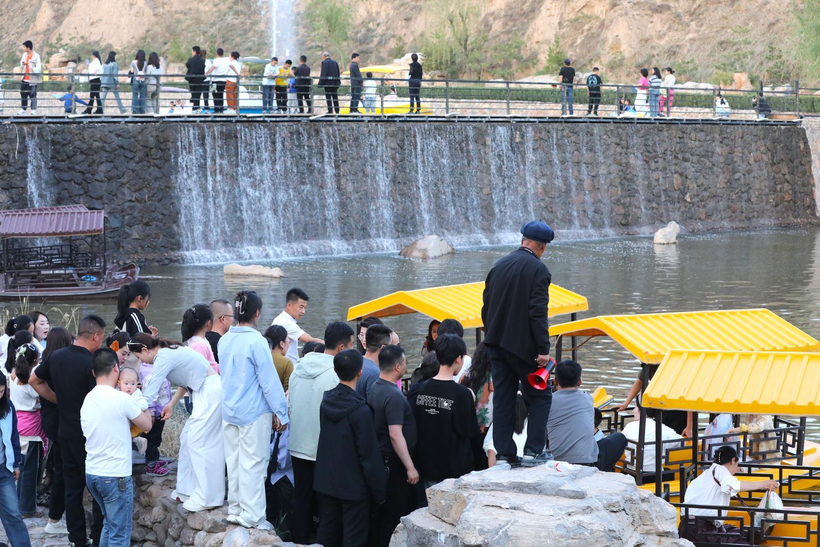 來到環(huán)州故城龍泉疊水片區(qū),又是另一番愜意景象。游客們或與家人相伴,或與朋友同行,泛舟碧波之上,任清涼的微風拂面,看岸邊垂柳依依、綠意盎然,悠然自得。這里不僅是避暑納涼的好去處,更是親子互動、朋友歡聚的理想之地。游人和市民沉浸在這片歡樂清涼的天地里,盡情享受著五一假期的悠閑與美好。