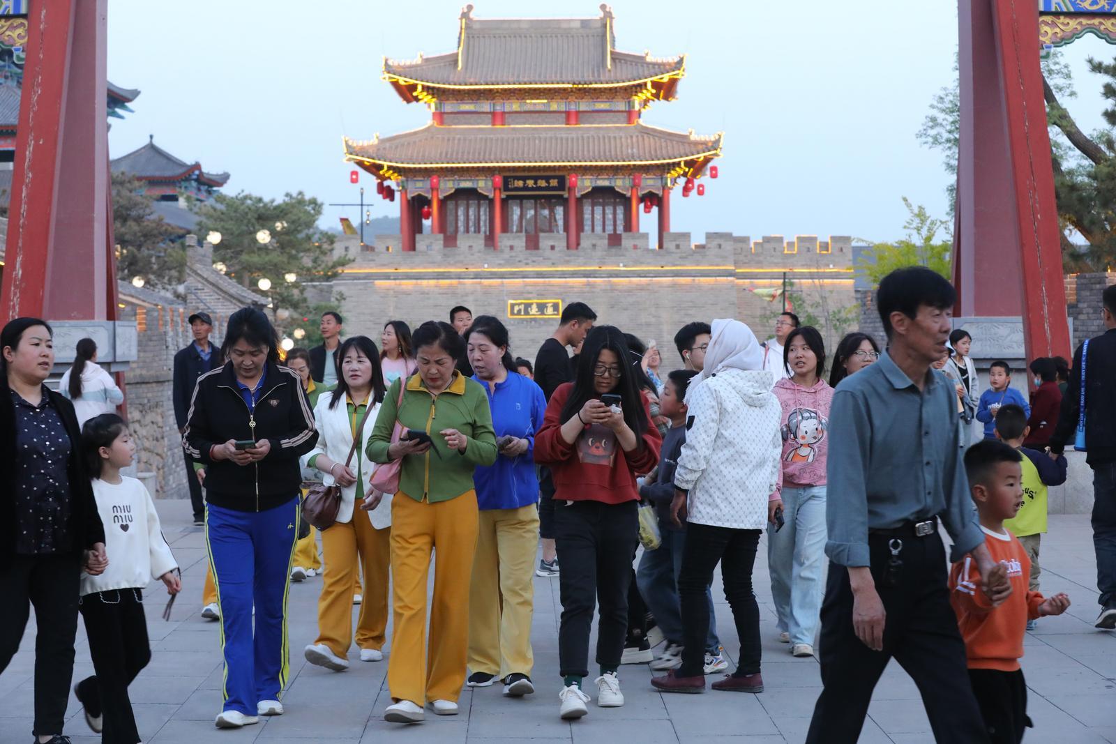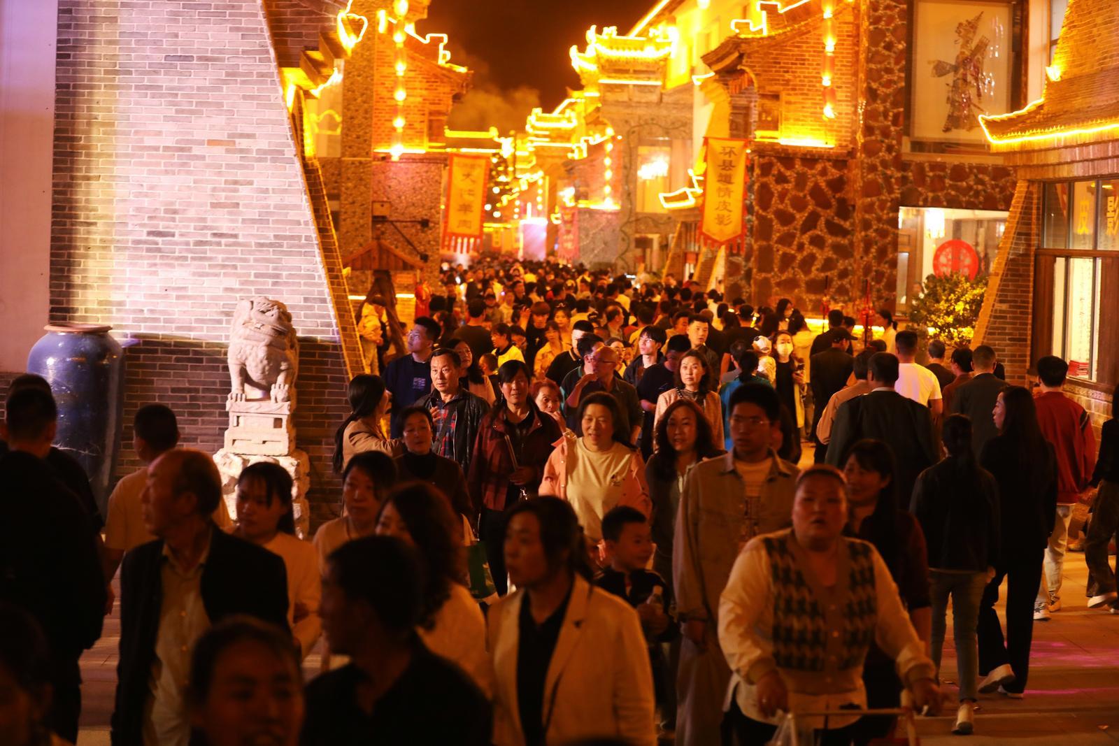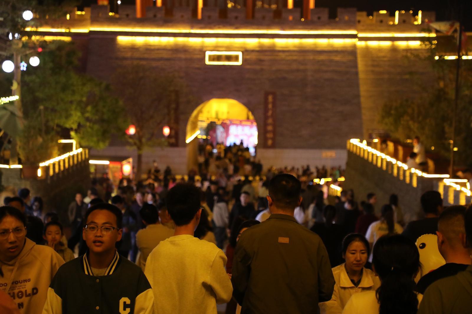 隨著暮色漸濃,華燈初上,故城內(nèi)更是人潮如織,歡聲笑語回蕩在街巷之間,熱鬧氛圍達到頂點。這些游客中,不少來自周邊省市。他們或三兩好友相約同行,或全家出動共享天倫。