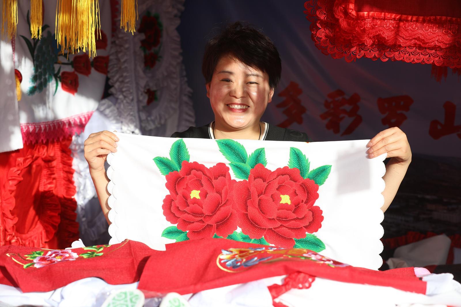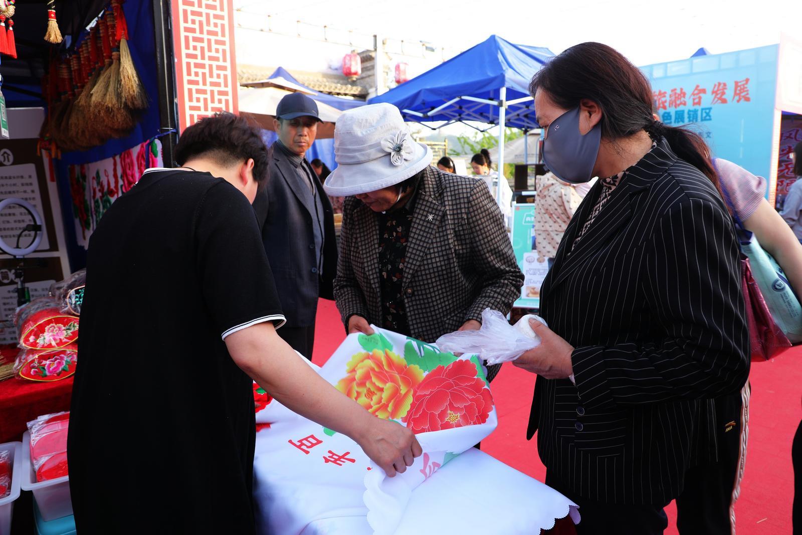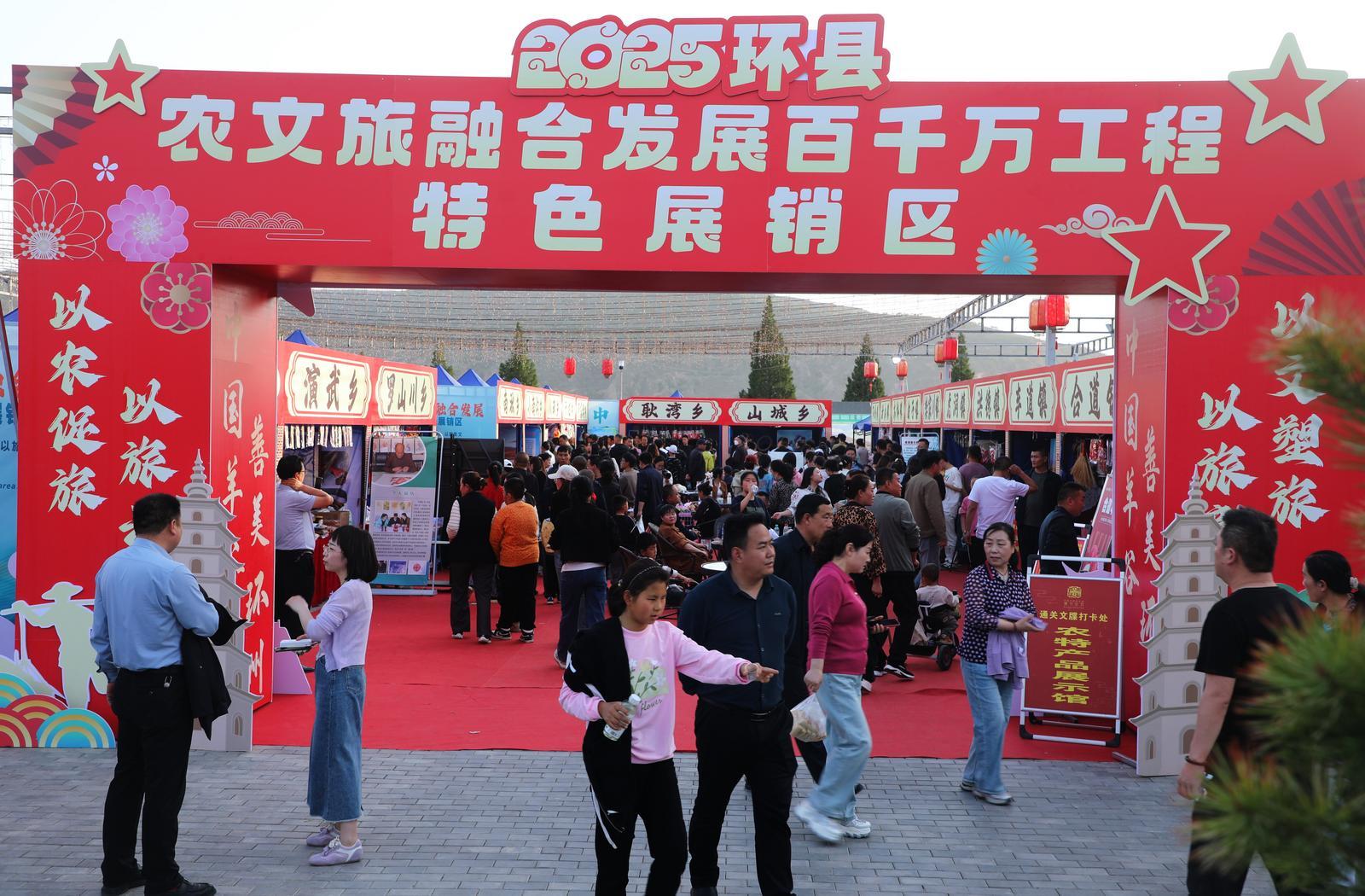 環(huán)縣農(nóng)文旅融合發(fā)展百千萬工程特色展銷區(qū)同樣人氣爆棚。來自毛井鎮(zhèn)、洪德鎮(zhèn)、木缽鎮(zhèn)等20個鄉(xiāng)鎮(zhèn)的展位前,擠滿了前來參觀選購的游客和市民。黃花菜、蘋果、蕎面、黃小米、蕎麥醋、土蜂蜜、精致的香包刺繡……琳瑯滿目的農(nóng)特產(chǎn)品一經(jīng)亮相,便吸引眾人目光,大家爭相挑選,滿載而歸,展銷區(qū)成為傳播環(huán)縣特色文化的重要窗口。