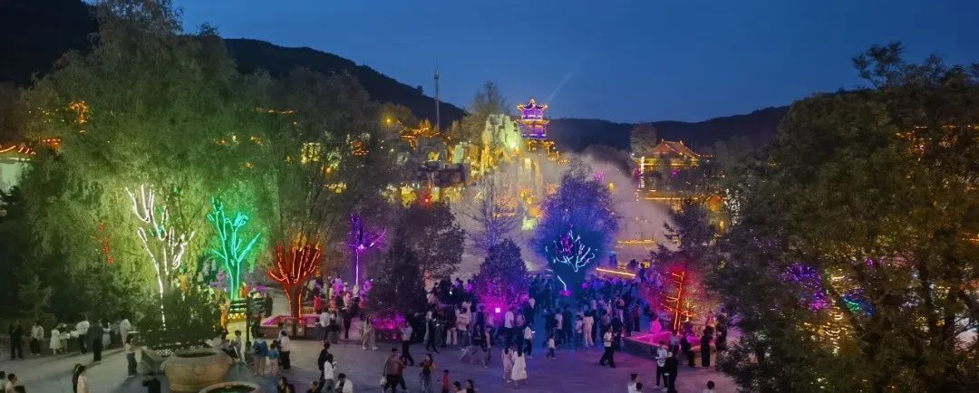 夜幕降臨,景區(qū)的絕美夜色和精彩紛呈的表演吸引游客紛紛駐足。紫氣樓燈光璀璨,雄偉壯觀;風(fēng)情水街游人如織,美食飄香;瀑布與聲光巧妙結(jié)合,美輪美奐;游樂園燈光旖旎,滿載童聲笑語。