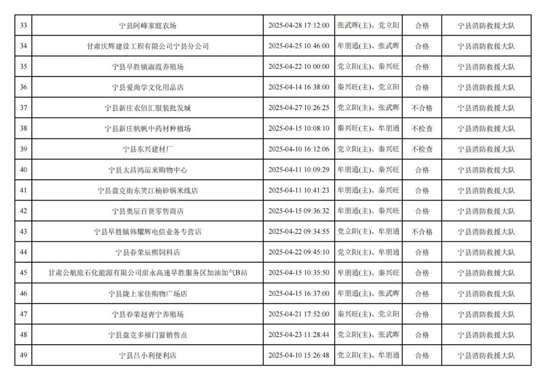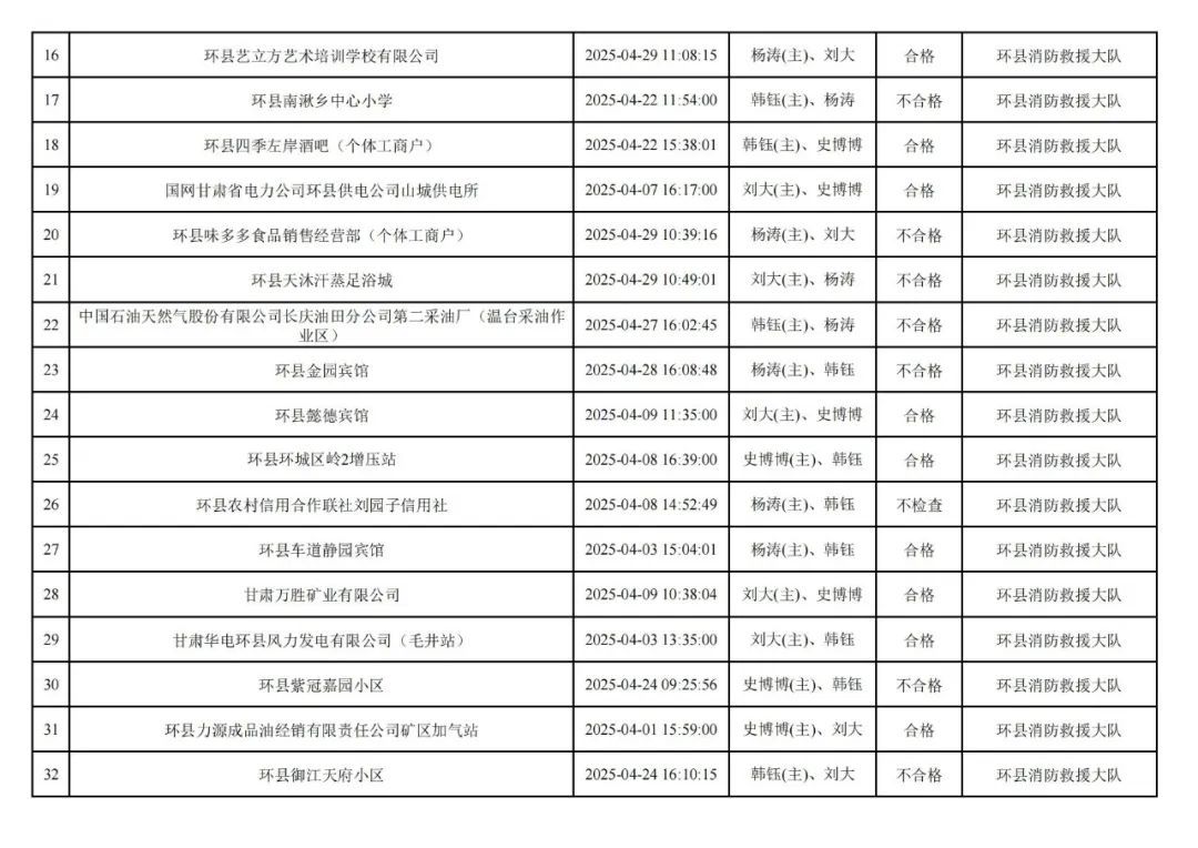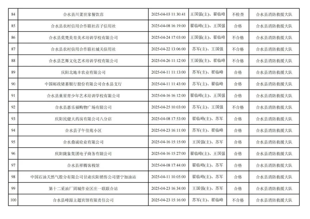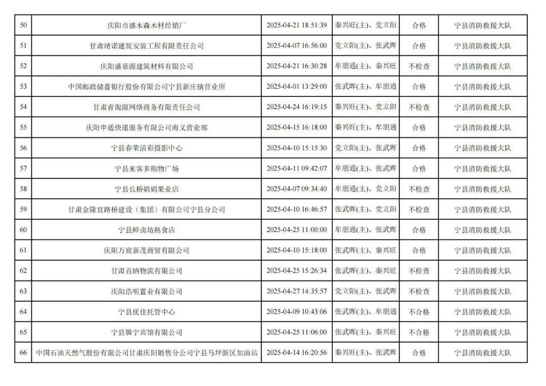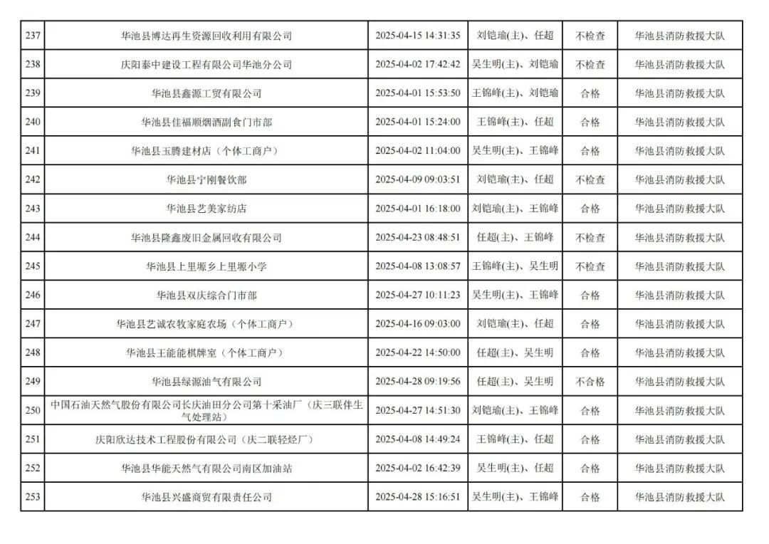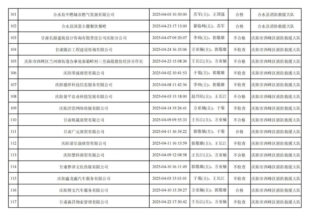 為貫徹落實(shí)《消防救援局關(guān)于全面推行“雙隨機(jī)、一公開”消防監(jiān)管工作的通知》(應(yīng)急消〔2019〕241號),認(rèn)真組織實(shí)施“雙隨機(jī)、一公開”消防監(jiān)管工作,現(xiàn)將2025年4月份“雙隨機(jī)、一公開”消防監(jiān)督檢查結(jié)果及2025年5月份監(jiān)督抽查計(jì)劃公示如下:
