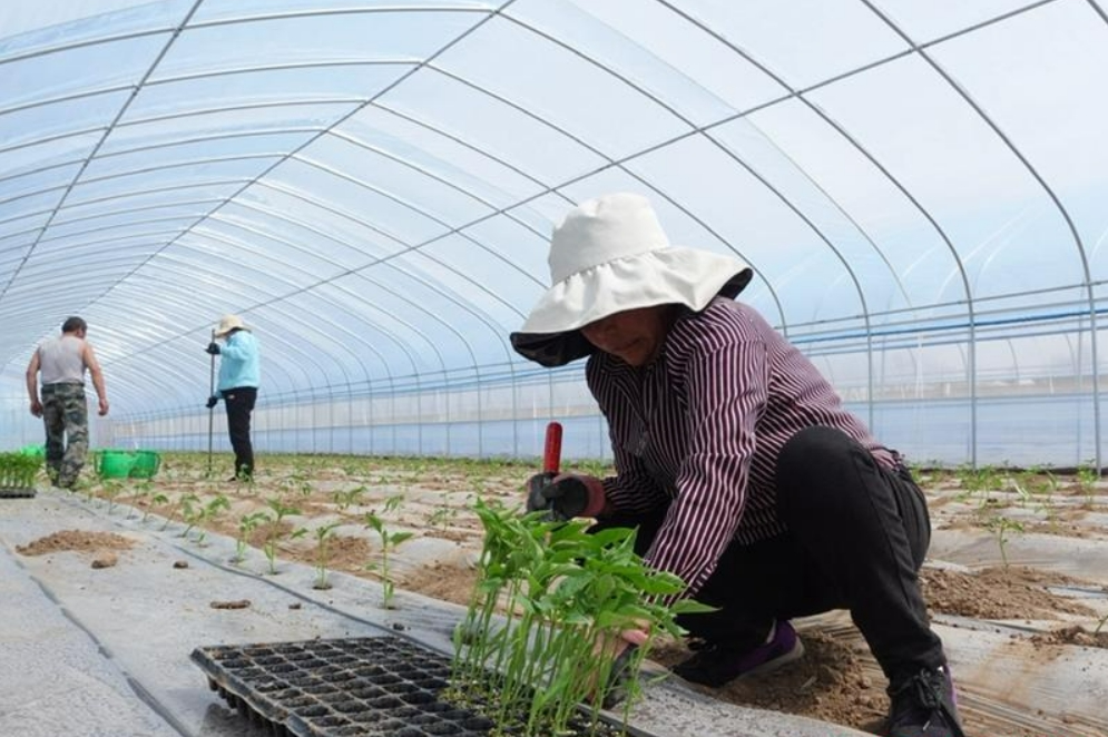 走進(jìn)上何村的蔬菜大棚,村民包雪峰和其他村民們正趁著谷雨過后土壤墑情良好的有利時(shí)機(jī),緊張有序地開展辣椒移栽工作。大家分工合作,配合默契,搬運(yùn)、打孔、栽苗、覆土、澆水等各項(xiàng)工作有序進(jìn)行,不一會(huì)兒,一排排辣椒苗就整齊地栽種在大棚里,勾勒出一幅田園新畫卷。