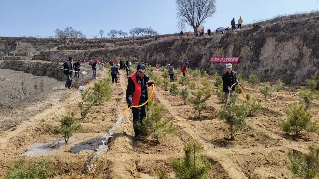 穿行于西環(huán)川公路,透亮的藍(lán)、明媚的黃和滿眼的綠,令人目不暇接;俯瞰巴家咀水庫(kù),粉白的杏花與蒼綠的松柏在坡地交錯(cuò),將春色揉成流動(dòng)的油彩;站在后官寨路堡村的山頂,只見(jiàn)數(shù)百名干部群眾揮鍬鏟土,將一棵棵樹苗植入黃土,這片塬邊空地,也悄然披上綠裝……