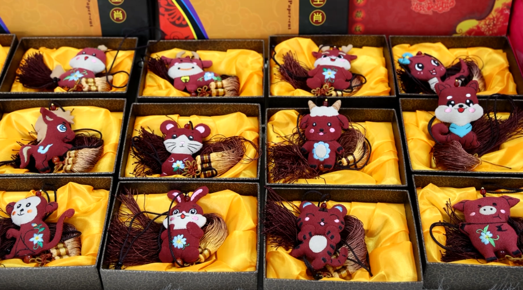 慶陽凌云服飾集團(tuán)軒轅香包藝術(shù)有限公司生產(chǎn)負(fù)責(zé)人侯喜云介紹:“我們?yōu)橄惆?jié)準(zhǔn)備了18個(gè)系列6萬多件商品,今年主打純手工國潮風(fēng)格刺繡香包,比如‘南佐記憶’刺繡陶罐、卡通十二生肖系列掛件、刺繡如意掛件、卡通胸針等一系列產(chǎn)品。這段時(shí)間,我們組織了6個(gè)繡娘現(xiàn)場打樣、制作樣品,然后分給周邊的繡娘們?yōu)槲覀兣可a(chǎn),目前已生產(chǎn)6.8萬件。公司訂單不斷攀升,銷售額已超過100萬元?!?/p>