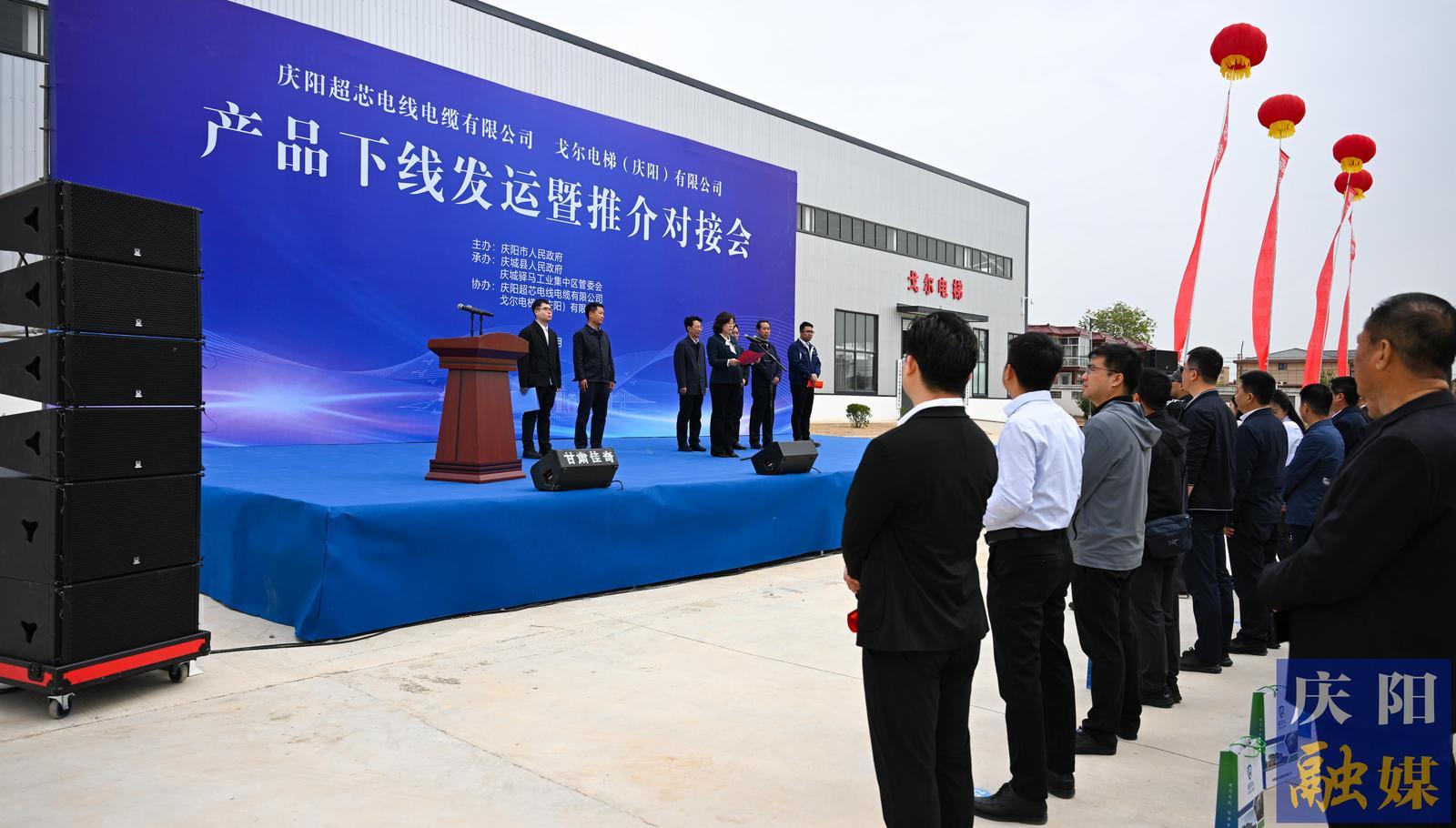 活動現(xiàn)場彩旗招展、氣氛熱烈,市直相關(guān)部門及中省駐慶單位、企業(yè)家代表等160余人參加活動。慶陽超芯電線電纜有限公司、天津戈爾電梯(慶陽)有限公司負(fù)責(zé)人介紹了公司及產(chǎn)品情況,客戶代表分享了產(chǎn)品應(yīng)用案例。隨后,舉行了產(chǎn)品下線發(fā)運儀式,參加活動人員集體觀摩了企業(yè)產(chǎn)品展廳及智能化生產(chǎn)車間。