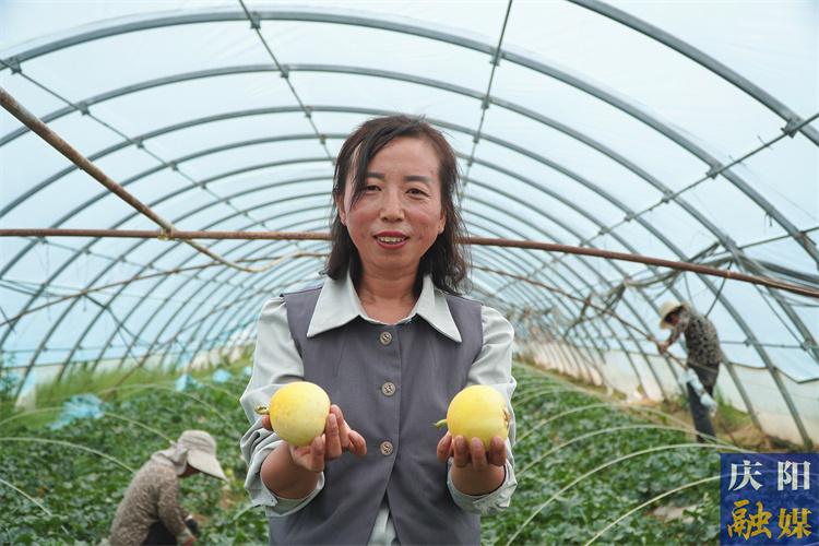 ▲屈婭萍展示成熟的甜瓜。