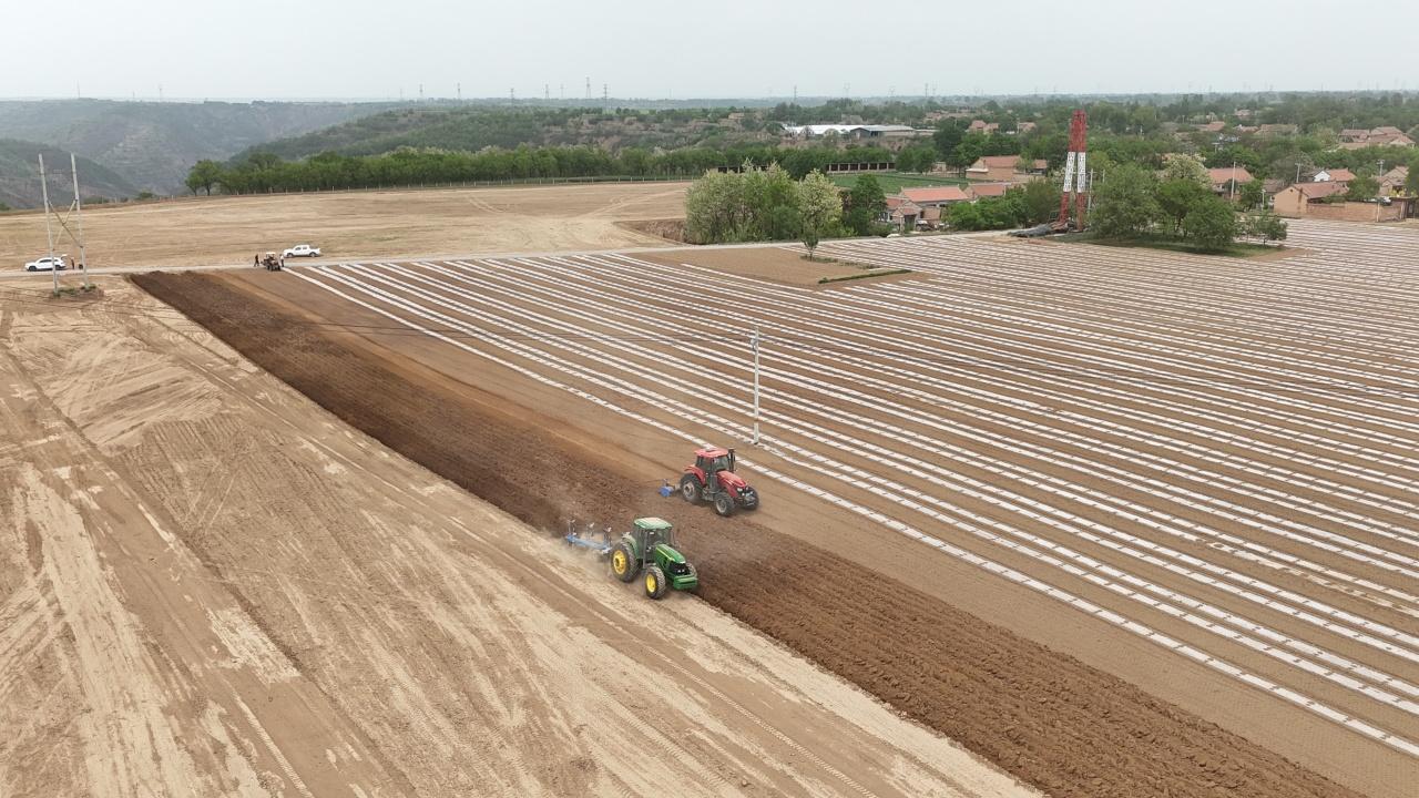 最近幾天,張占忠正忙著旋耕800多畝土地,為玉米種植做準(zhǔn)備。這里將建成全市大豆玉米帶狀復(fù)合種植示范區(qū)基地,種植29個玉米品種,作比對試驗。為此,合作社建成了高標(biāo)準(zhǔn)化農(nóng)田,配備了水肥一體化滴灌系統(tǒng),可實現(xiàn)水分、養(yǎng)分定時定量、按比例供給作物??萍挤N田正在黃土高原變?yōu)楝F(xiàn)實。