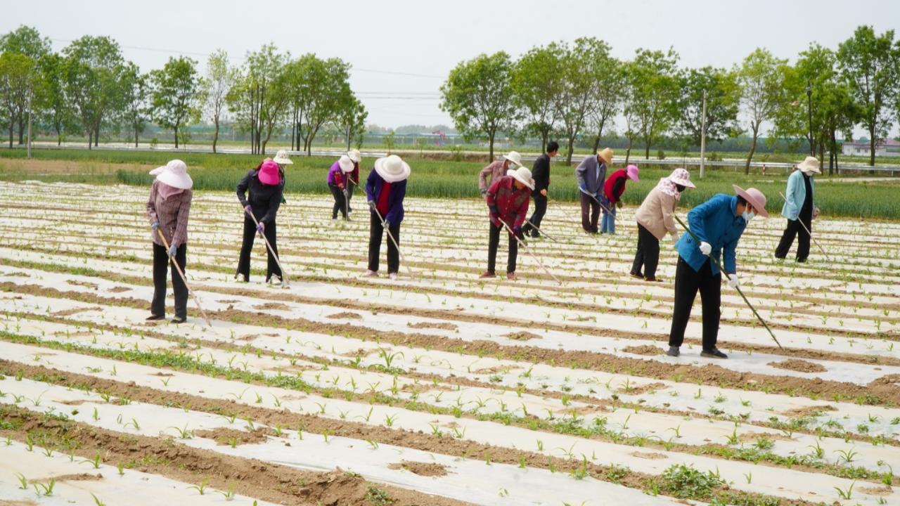5月8日,記者來到寧縣和盛鎮(zhèn)南街村,30多名群眾正在800多畝的玉米大田里放苗。一根簡單的竹棍頂端綁上一小段彎曲的鐵絲,一伸一勾,玉米苗就從地膜里"探"出了頭。今年60多歲的楊金漢家有7畝多地,6畝都流轉(zhuǎn)給了合作社,他和老伴有空就在合作社打工,春天放玉米苗、除草、夏天收割,秋天復(fù)種,一年到頭也有三萬多元的收入?!爸刑┝鬓D(zhuǎn)了村上的土地,我們在這里務(wù)工,一天80元,工資都是很快結(jié)清,我們干活也很積極?!?/p>