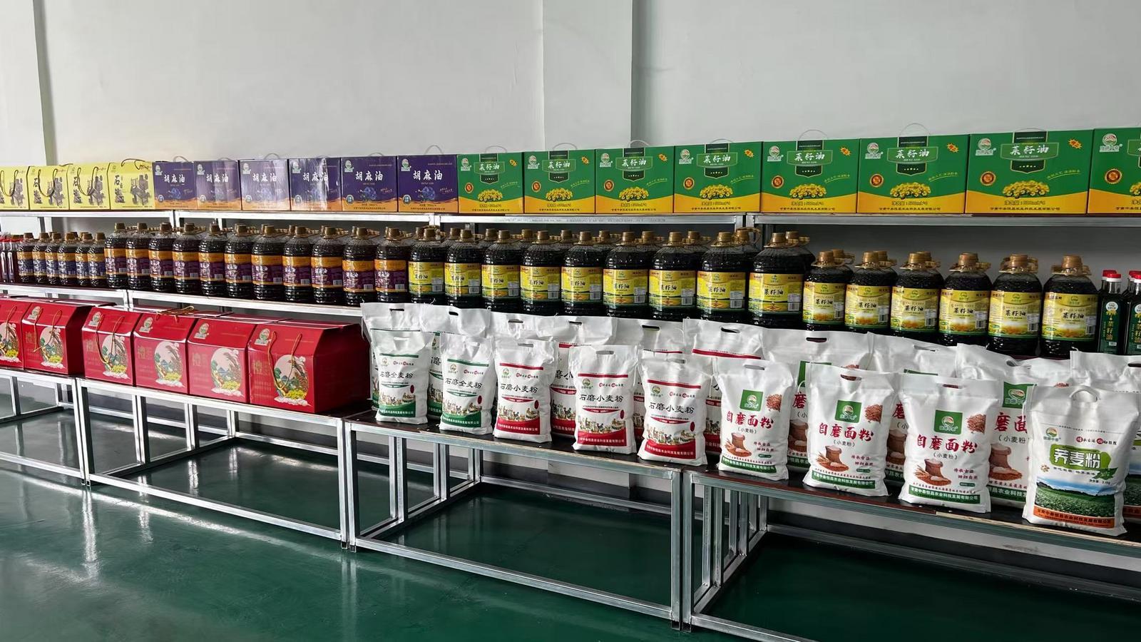 走進(jìn)甘肅中泰恒昌食品加工廠,嶄新干凈的廠房讓人眼前一亮,大型磨面機、榨油機等自動化設(shè)備正忙碌運轉(zhuǎn)?!拔覀儸F(xiàn)在有四種產(chǎn)品:食用油、自磨面粉、石磨面粉,還有掛面。我們加工的產(chǎn)品原料全部來自于自己種植的糧油,安全、綠色、無添加?!闭f著,張占忠將一小把面粉放入記者手中,面粉看起來比市場上的面粉略顯黑,但卻飄出一股小面獨有的香氣。