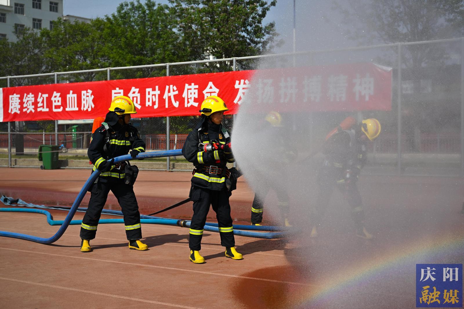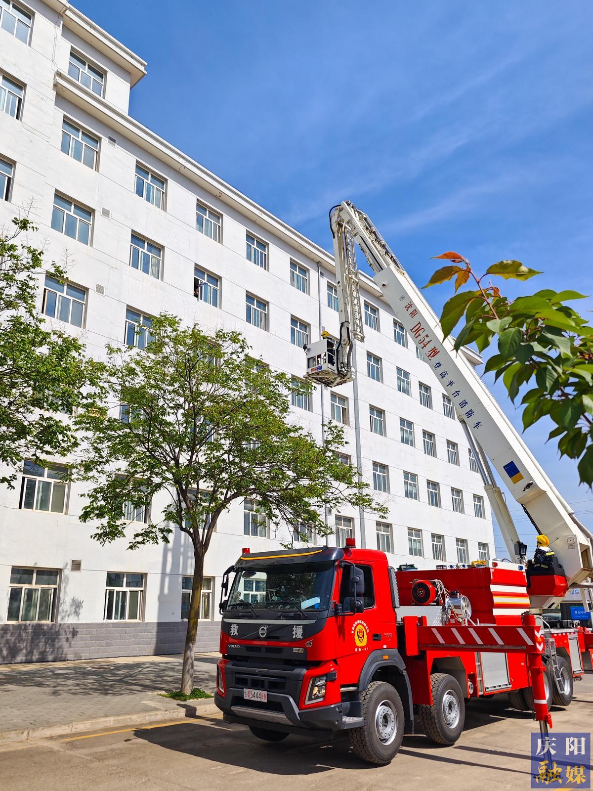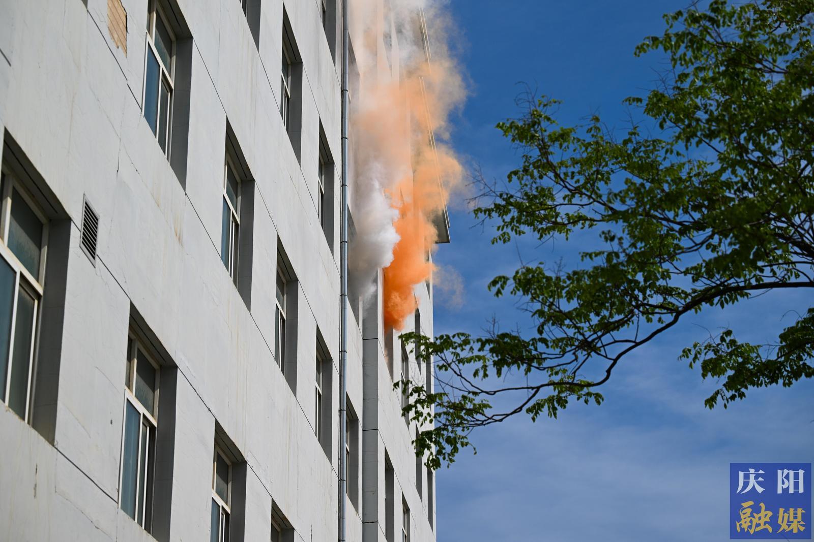 宿舍樓突發(fā)火情應(yīng)急演練現(xiàn)場。