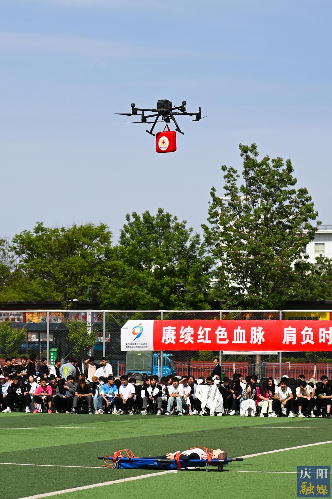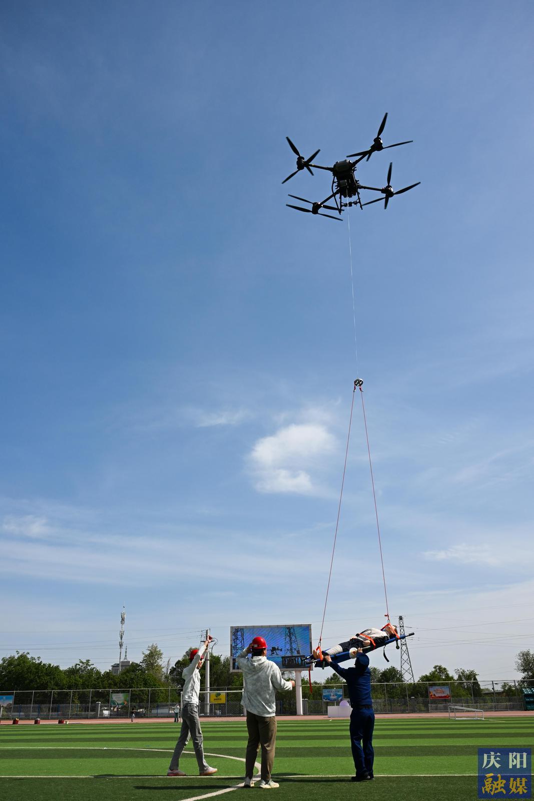 無人機(jī)運(yùn)送急救包等物資進(jìn)行空投。