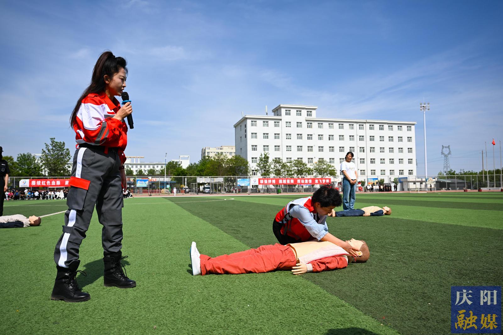 急救知識應(yīng)急演練現(xiàn)場。