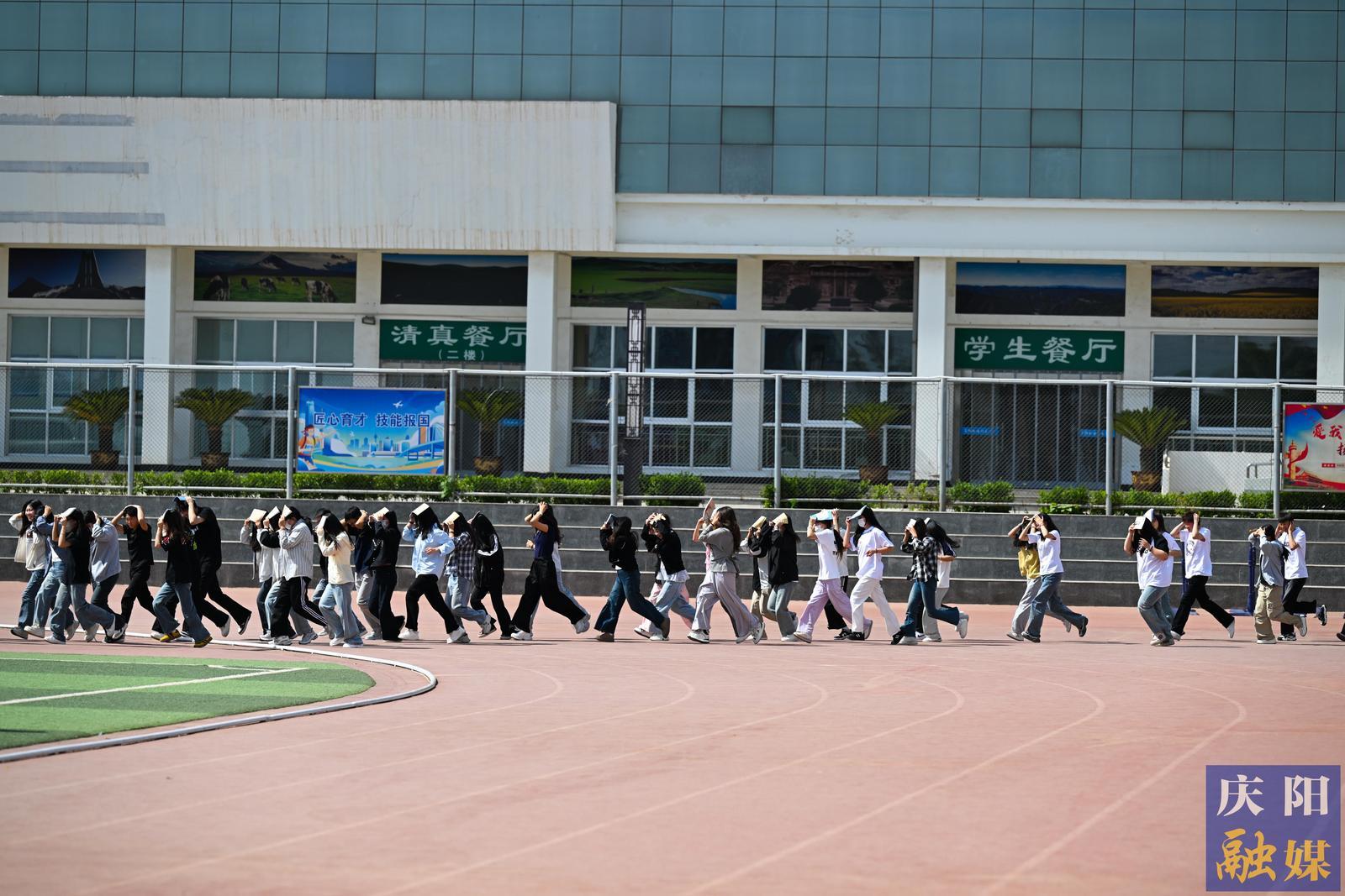 突發(fā)地震應(yīng)急演練,學(xué)生安全有序撤離至集中點(diǎn)。