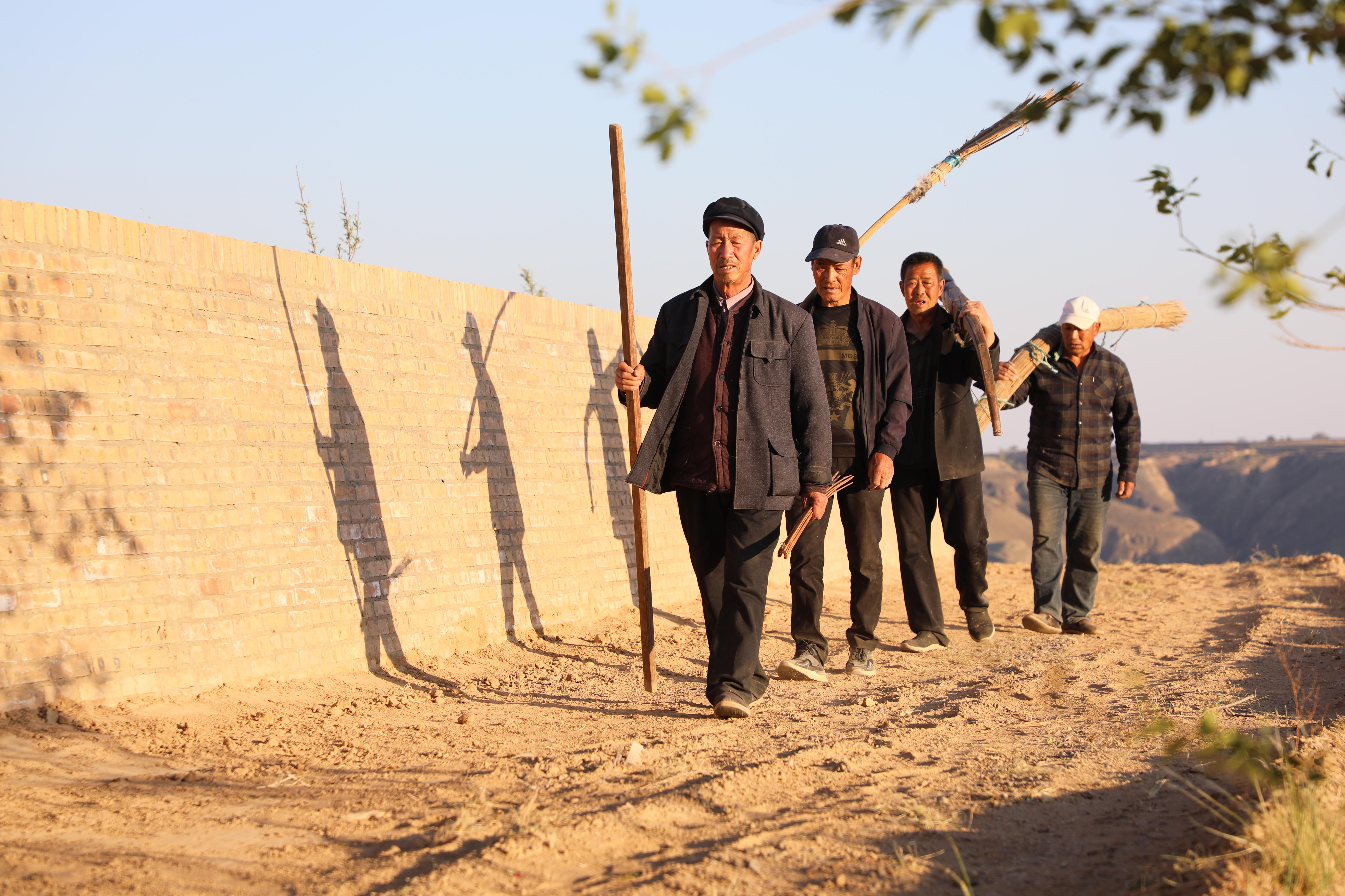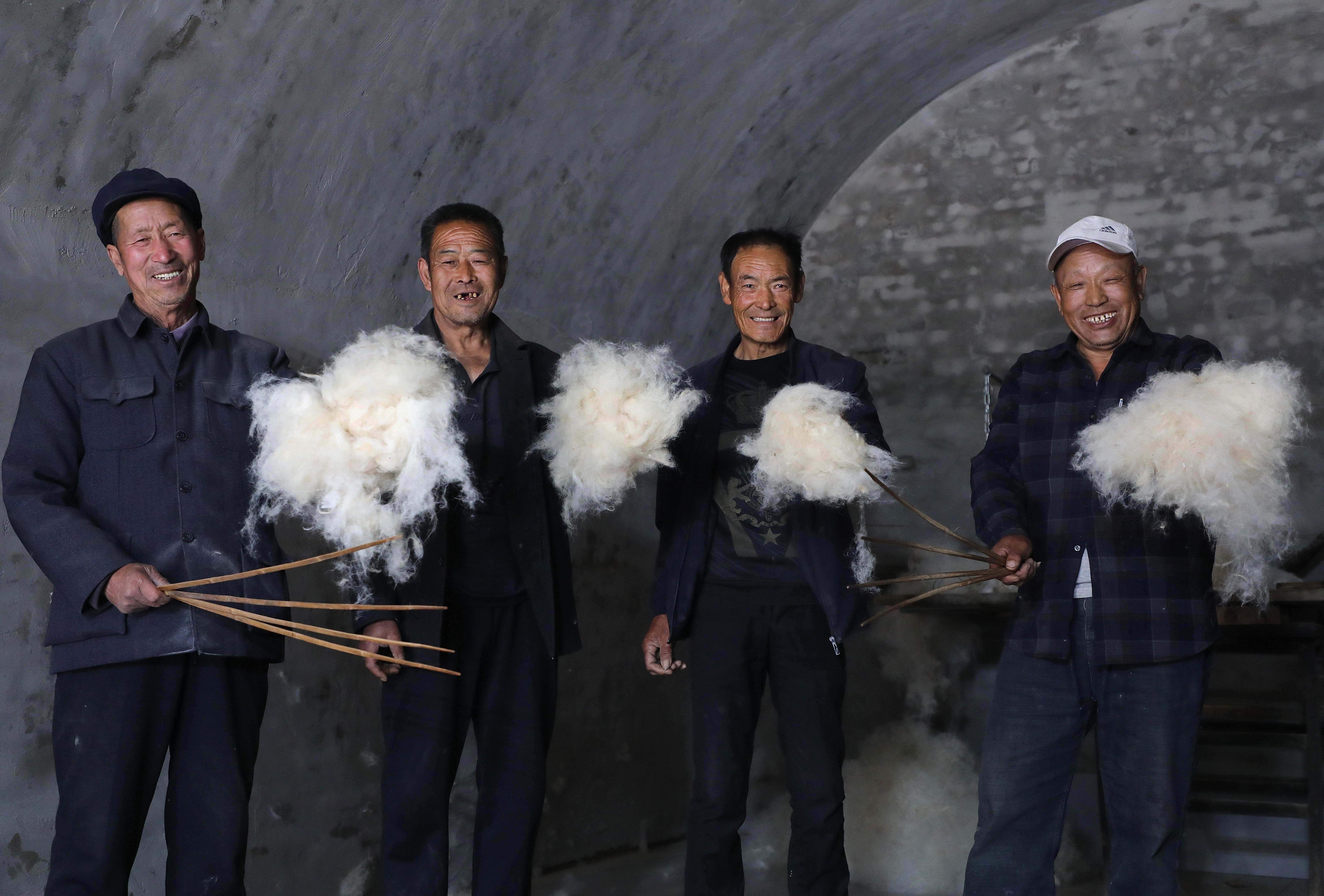 近日,應(yīng)環(huán)縣洪德鎮(zhèn)耿塬畔莊子峁負(fù)責(zé)人楊清艷邀請(qǐng),薛占省帶領(lǐng)兩位堂弟徒弟—63歲的薛占紅和59歲的薛占義,以及本村另一位王姓老氈匠,重新拿起塵封已久的簾、弓、撣、絆、叉等簡(jiǎn)單工具,來(lái)到莊子峁,再次展示這門古老的技藝。