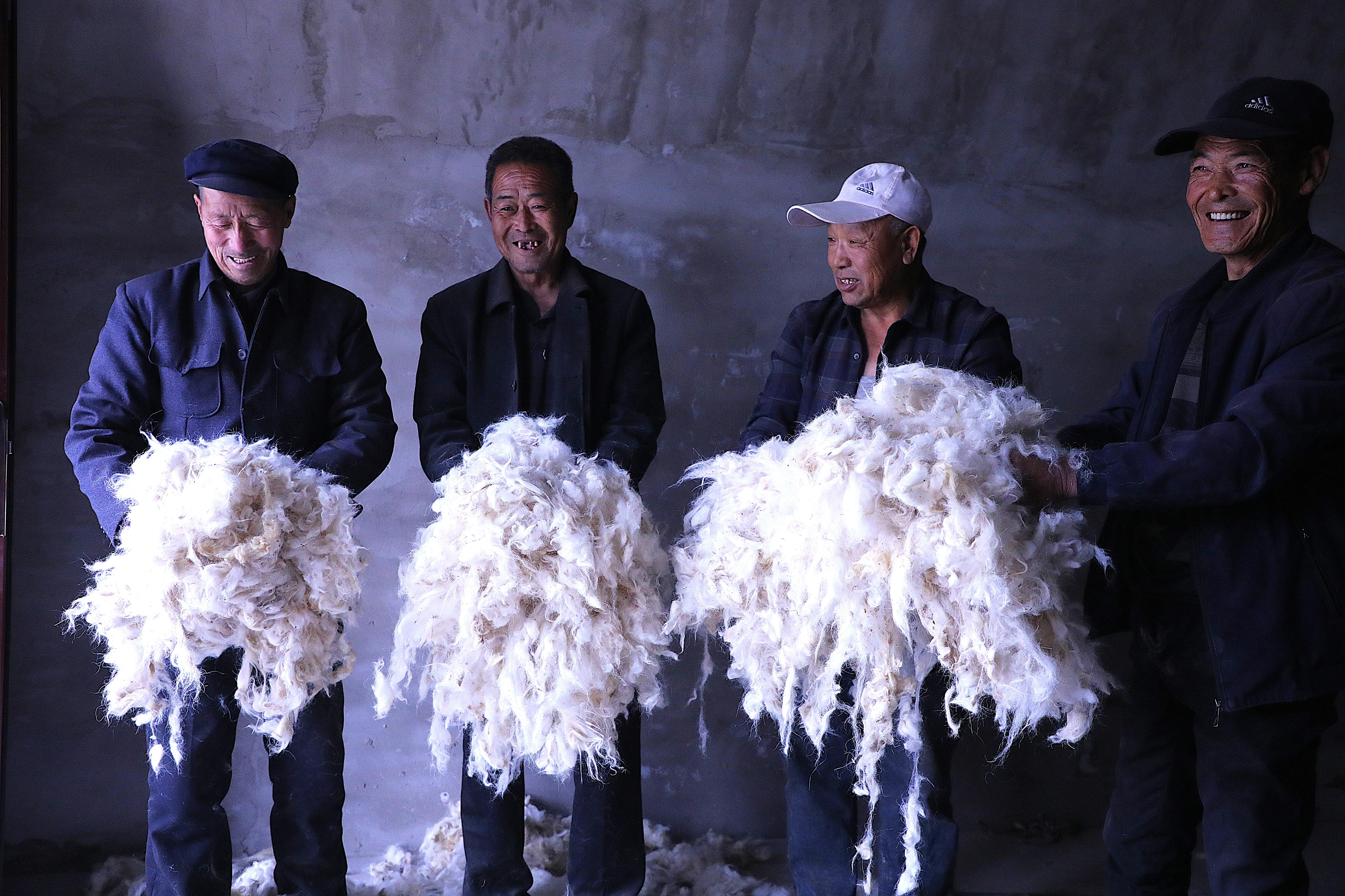 第一道工序是撿毛。匠人們把所需羊毛倒在平整的窯掌地上,幾人圍坐,仔細(xì)挑出里面的雜質(zhì)、羊糞。