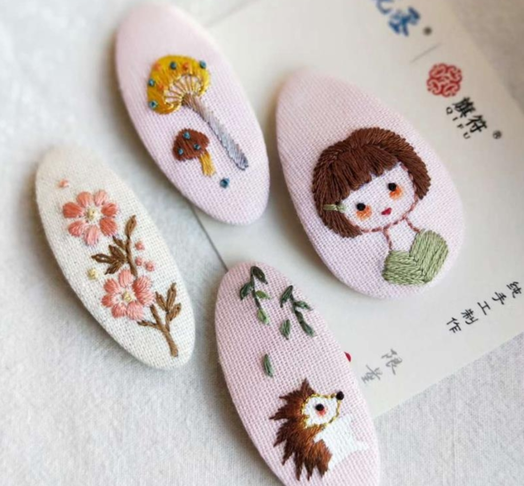 同時(shí),雷亞茹大膽創(chuàng)新,將香包技藝運(yùn)用到發(fā)飾制作中。她巧妙地將傳統(tǒng)刺繡、盤扣、珠飾等元素融入發(fā)卡設(shè)計(jì),把象征吉祥如意的花卉、動(dòng)物等圖案繡在小巧的發(fā)卡上,這些發(fā)卡既有傳統(tǒng)香包的精致細(xì)膩,又兼具現(xiàn)代發(fā)飾的新穎大氣,一經(jīng)推出便深受市場青睞。