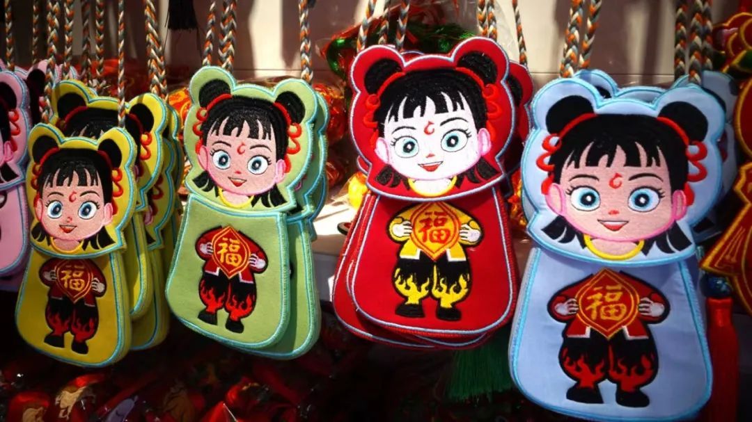 董利紅的作品以“古樸不失時(shí)尚”著稱。她在傳統(tǒng)題材中融入現(xiàn)代審美,如將老虎枕的造型簡(jiǎn)化、色彩明快化,推出符合年輕人喜好的文創(chuàng)產(chǎn)品:“今年我們公司又新推出了哪吒的手機(jī)包,因?yàn)轭櫩投急容^喜歡,到現(xiàn)在銷售量有5000單?!?/p>