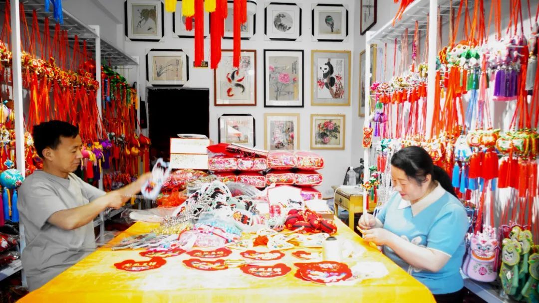 從事香包刺繡30年來(lái),賈紅東不僅大力支持董利紅創(chuàng)業(yè),還負(fù)責(zé)市場(chǎng)拓展與物流支持,夫妻二人分工協(xié)作,將家庭作坊發(fā)展為年產(chǎn)值幾十萬(wàn)元的企業(yè)。