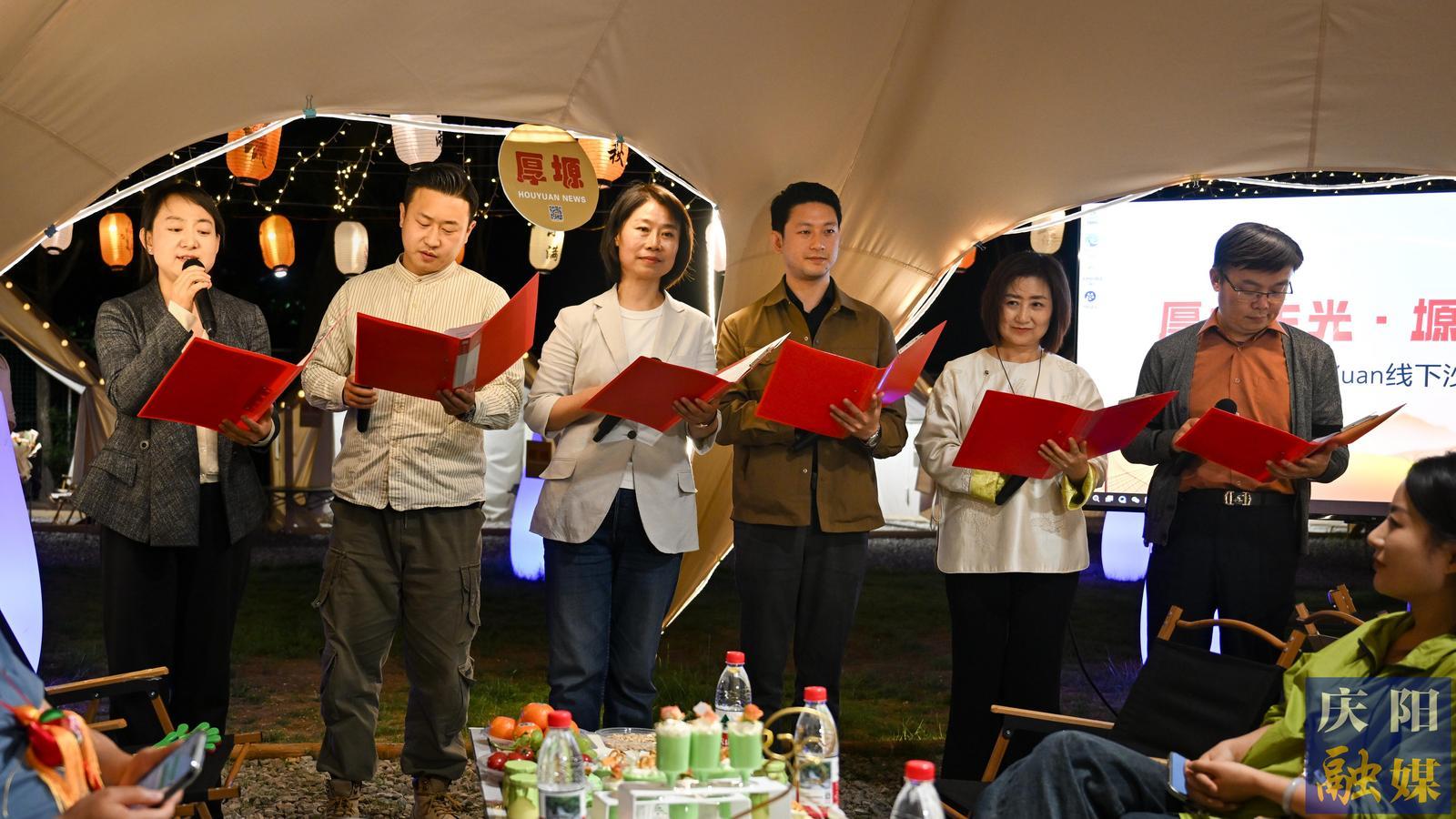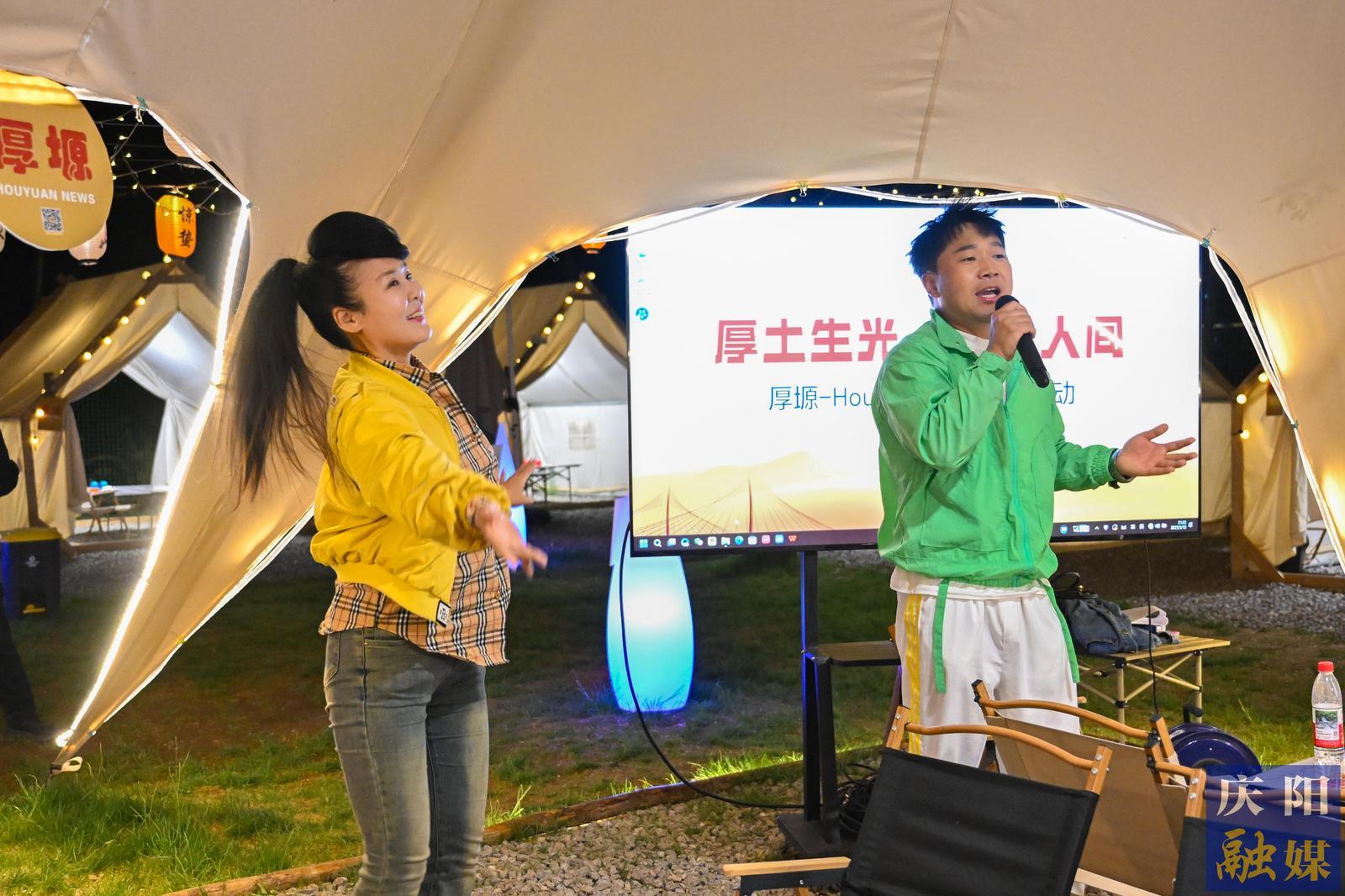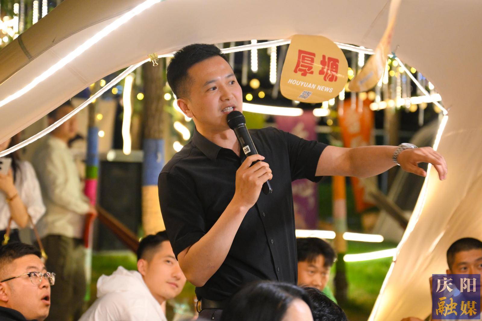 活動以星空露營為背景,通過嘉賓分享、互動交流、才藝展示等形式展開。省級媒體負責(zé)人分享了新聞“破圈”思路;8縣(區(qū))融媒體代表推介地方特色,展現(xiàn)慶陽風(fēng)土人情;自媒體創(chuàng)作者結(jié)合自身實踐,探討了短視頻選題、素材挖掘及傳播策略?,F(xiàn)場還設(shè)置“擊鼓傳花”“飛花令”等趣味環(huán)節(jié),嘉賓們即興表演隴劇、詩朗誦等,氛圍輕松愉快。