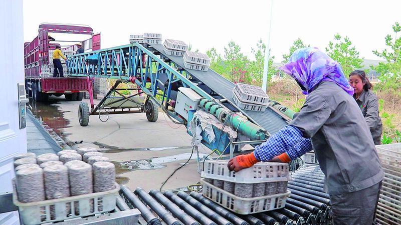 菌菇搶“鮮”上市,木耳基地產(chǎn)銷兩旺。近日,記者來到位于西峰區(qū)彭原鎮(zhèn)的慶陽晶晶生物科技有限公司,在遠處就聽到機械的轟鳴聲,循聲來到菌棒生產(chǎn)車間,自動化生產(chǎn)線上,生產(chǎn)、轉(zhuǎn)運、滅菌,各環(huán)節(jié)緊密銜接、高效運轉(zhuǎn)。工人們正通過傳送帶將10000袋菌棒裝車,運往山西柳林。而這也是今年該企業(yè)第七批運往外地市場的菌棒。