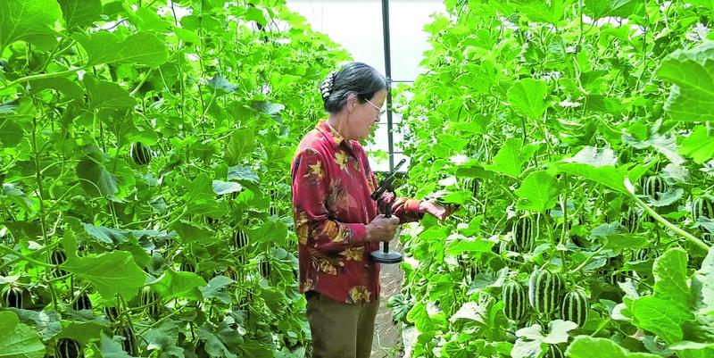 在慶城縣玄馬鎮(zhèn)的溫室大棚內(nèi),農(nóng)戶通過直播平臺銷售自家的甜瓜