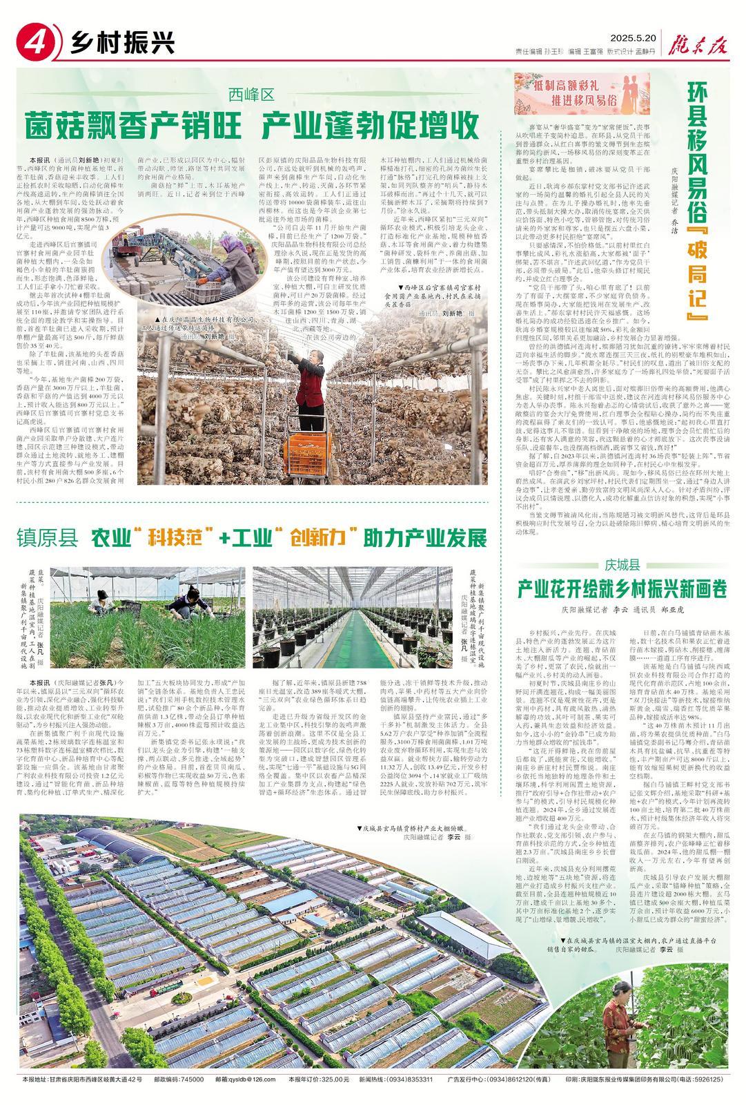 初夏時節(jié),西峰區(qū)的食用菌種植基地里,首茬羊肚菌、香菇迎來豐收季。工人們正搶抓農(nóng)時采收晾曬,自動化菌棒生產(chǎn)線高速運轉(zhuǎn),生產(chǎn)的菌棒銷往全國各地,從大棚到車間,處處躍動著食用菌產(chǎn)業(yè)蓬勃發(fā)展的強勁脈動。今年,西峰區(qū)種植食用菌8500萬棒,預(yù)計產(chǎn)量可達9000噸,實現(xiàn)產(chǎn)值3億元。