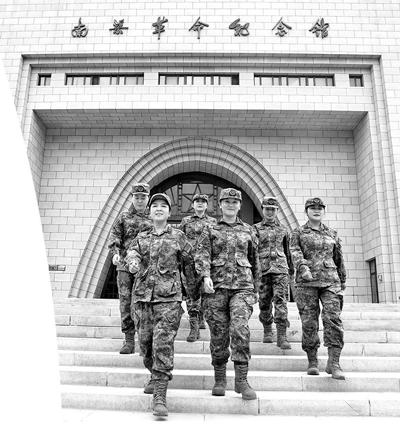 女民兵結(jié)束工作走出紀念館。張建平攝