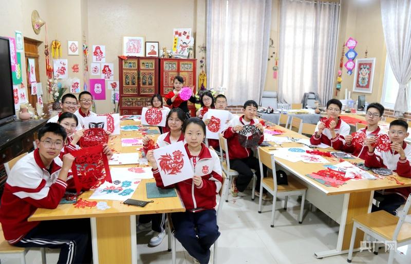 除了家庭式的代際傳承,非遺技藝也在慶陽校園中扎根生長。在北京師范大學(xué)慶陽實(shí)驗(yàn)學(xué)校的非遺教室,慶陽剪紙市級非物質(zhì)文化遺產(chǎn)代表性傳承人張銳利正帶領(lǐng)學(xué)生們剪出一個(gè)個(gè)活靈活現(xiàn)的圖案。作為國家級非遺項(xiàng)目,慶陽剪紙歷史悠久、技法多樣,通過“非遺進(jìn)校園”活動(dòng)進(jìn)入課堂,深受學(xué)生喜愛,逐漸成為校園文化的一部分。