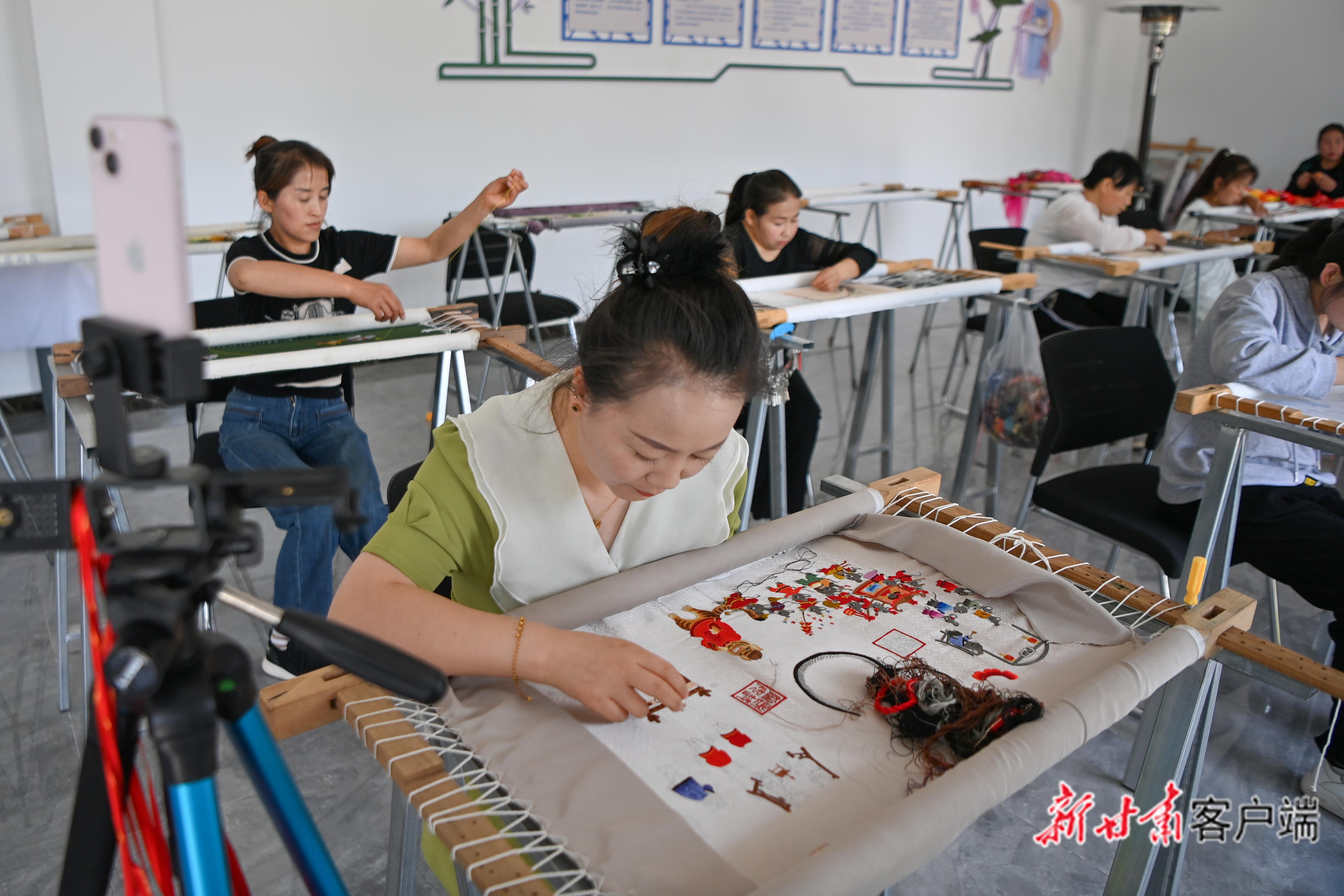 繡娘們正在繡制作品。