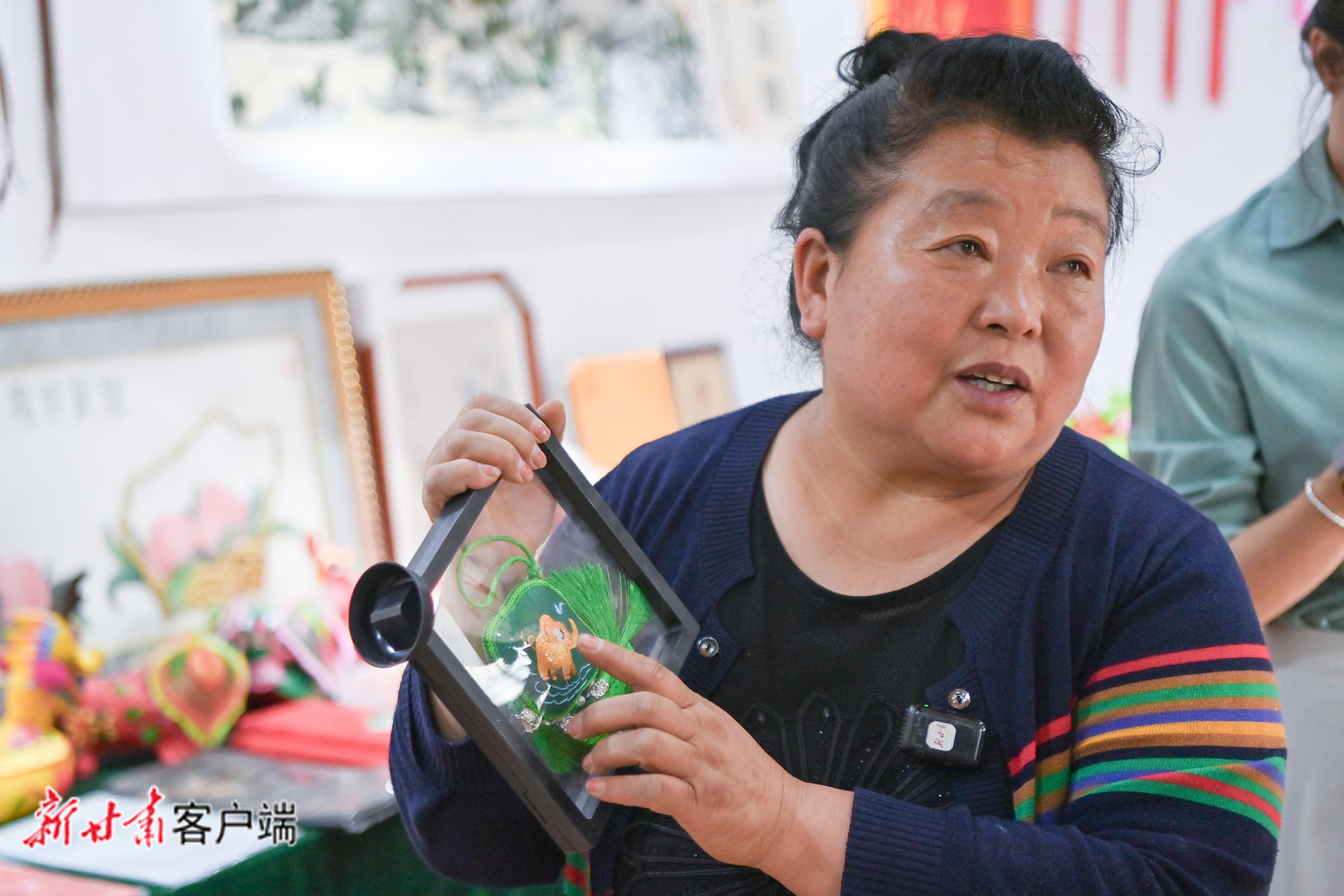 在她身后的榮譽(yù)墻上,“中國(guó)特色旅游商品大賽銅獎(jiǎng)”“全國(guó)巾幗脫貧示范基地”“甘肅省鄉(xiāng)村振興巾幗示范基地”等證書熠熠生輝,訴說(shuō)著她在傳承與創(chuàng)新道路上的不懈努力與非凡成就。