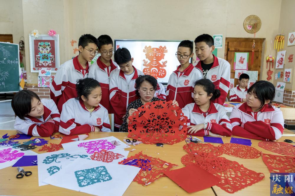 慶陽剪紙藝人給學生們講解慶陽剪紙的風格和特色。 慶陽融媒記者 俄少飛 攝
