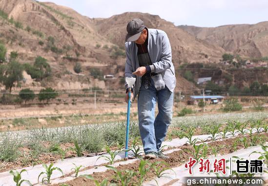 環(huán)城鎮(zhèn)張灘灘村村民李治江搶種玉米。 喬潔 攝