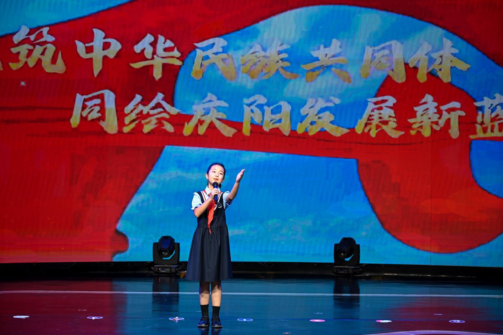 慶陽市實驗小學余若熙作題為《共筑中華民族共同體,同繪慶陽發(fā)展新藍圖》的演講。