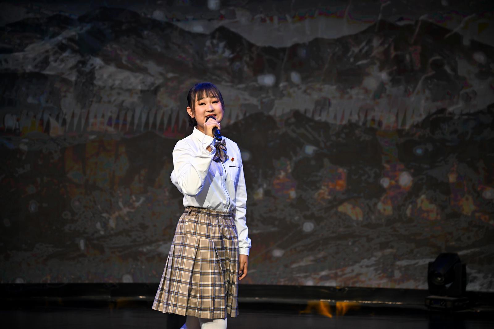 慶城縣慶華小學季萱怡作題為《石榴花開新時代,童心共筑中國夢》的演講。