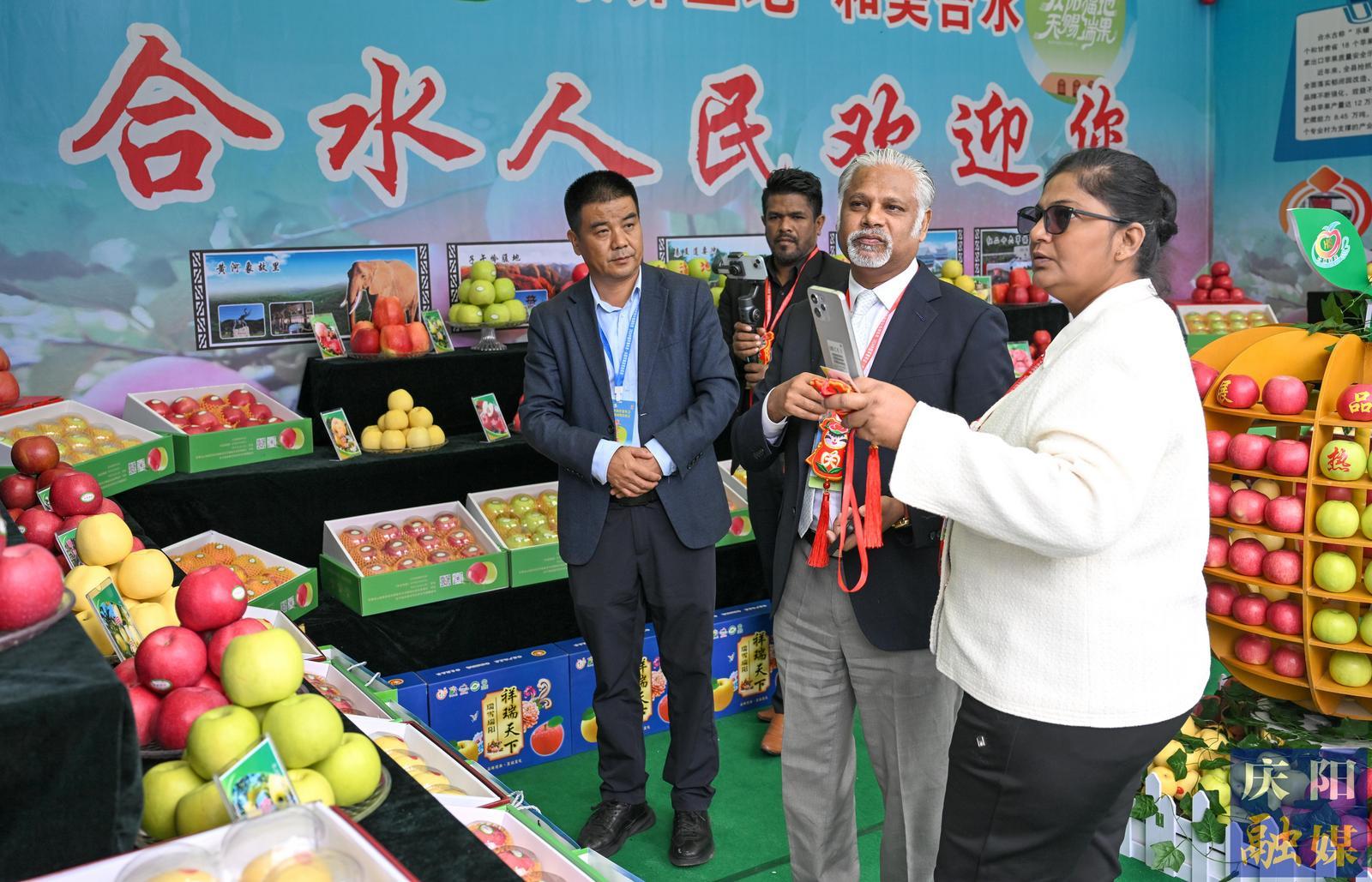 2024中國蘋果年會·慶陽蘋果商貿(mào)洽談會在慶城縣開幕,外國客商現(xiàn)場參觀。慶陽融媒記者 王志龍 攝
