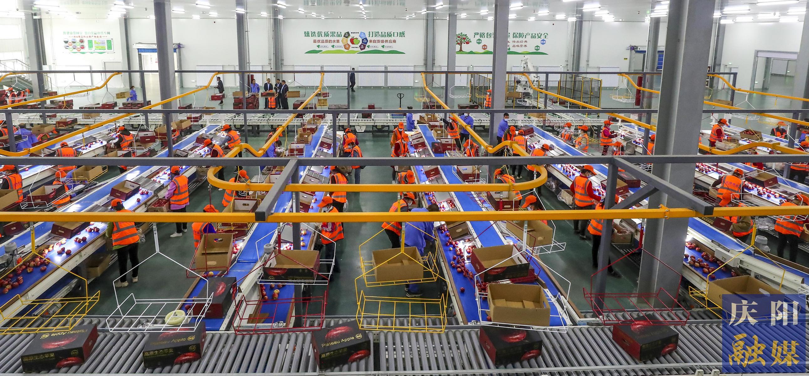 寧縣正洋冷鏈物流園工人打包蘋果。慶陽融媒記者 陳飛 攝