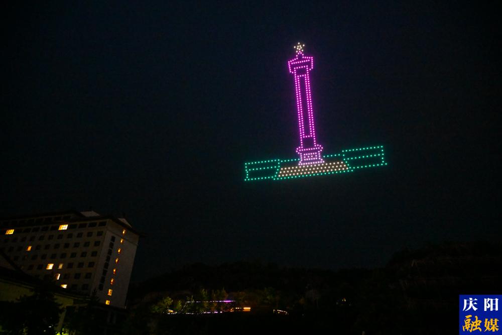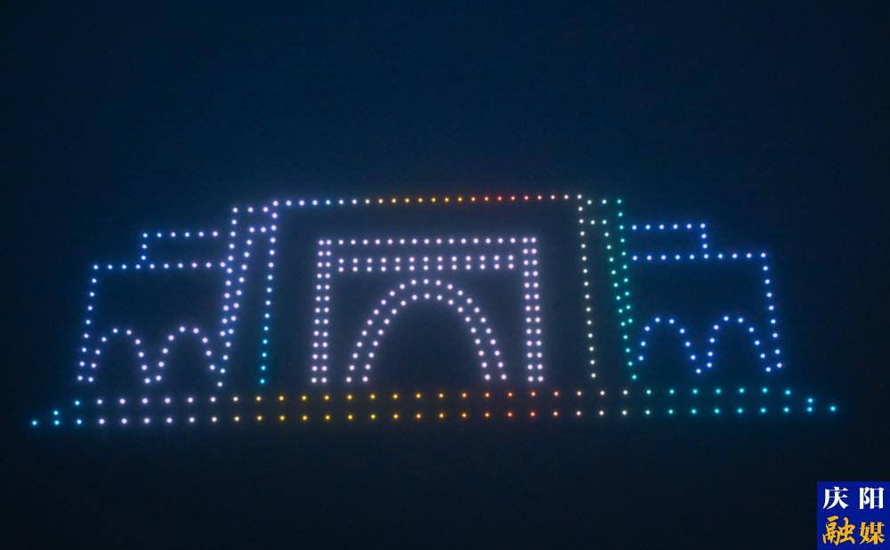 當(dāng)南梁紀(jì)念館的立體造型顯現(xiàn)云端,“騎行慶陽 逐夢(mèng)南梁”字幕在300米高空粲然綻放,夜空瞬間化作宇宙級(jí)光影劇場(chǎng)??萍汲绦蚺c藝術(shù)創(chuàng)意的精密咬合在此刻迸發(fā)魔力,無人機(jī)群時(shí)而化作銀河瀑布傾瀉而下,時(shí)而重組為對(duì)慶陽的浪漫表白,每秒的燈光變幻,都是算法與美學(xué)的交響詩,引發(fā)現(xiàn)場(chǎng)眾人齊聲驚嘆。坐標(biāo)代碼編織出比煙火更絢爛、比星空更可控的奇景,共同點(diǎn)了亮高原小城的夏夜之夢(mèng)。