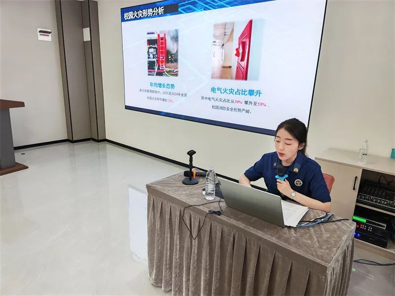 在3個(gè)小時(shí)的培訓(xùn)中,支隊(duì)人員以“理論+案例”為主線,結(jié)合近年校園火災(zāi)典型案例,剖析教學(xué)樓、實(shí)驗(yàn)室、宿舍、食堂等重點(diǎn)區(qū)域隱患特點(diǎn),系統(tǒng)講解消防法律法規(guī),重點(diǎn)圍繞校園消防安全責(zé)任落實(shí)展開研討。課程還設(shè)置滅火和疏散預(yù)案制定、初期火災(zāi)處置、消防設(shè)施使用、應(yīng)急逃生等板塊,內(nèi)容豐富、實(shí)用性強(qiáng),為做好校園消防安全工作提供了有力指導(dǎo)。