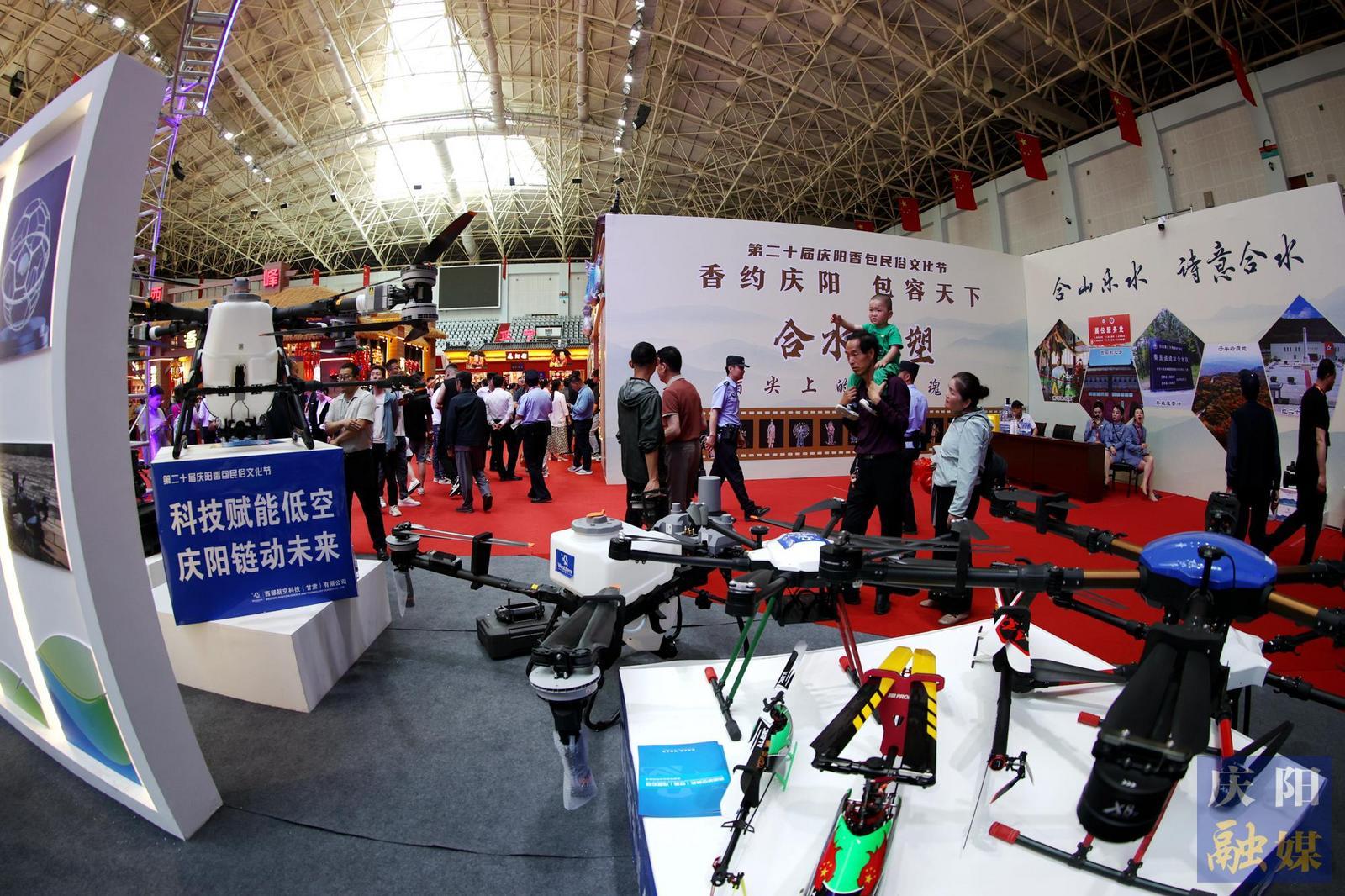 非遺沉浸式體驗活動主館智慧文旅體驗區(qū),無人機(jī)飛行器展區(qū)吸引游客觀賞咨詢。