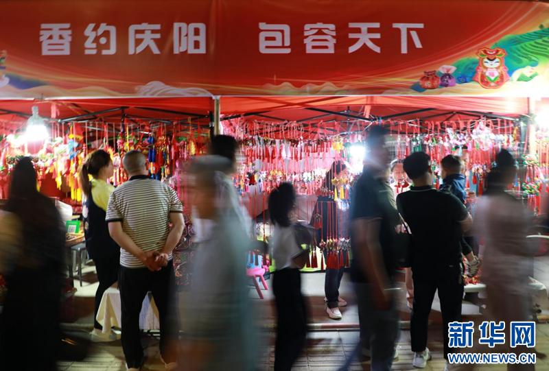 5月28日,甘肅省慶陽市西峰區(qū)的香包集市人來人往。新華網(wǎng)發(fā)(劉欣瑜 攝)