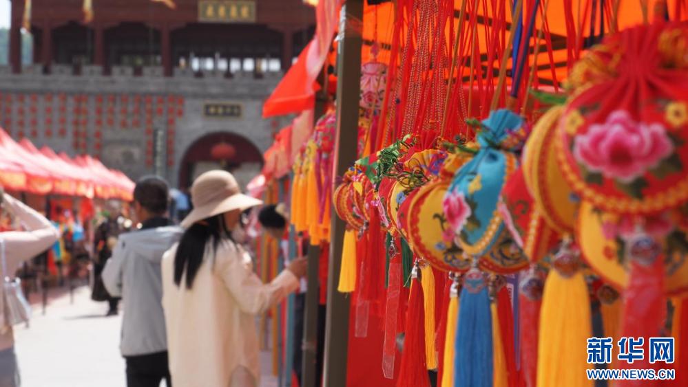 鎮(zhèn)原縣北石窟驛的香包刺繡展銷區(qū)