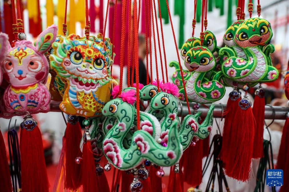 這是5月29日在慶陽香包民俗文化節(jié)非遺沉浸體驗區(qū)拍攝的部分十二生肖造型香包。新華社記者 郎兵兵 攝