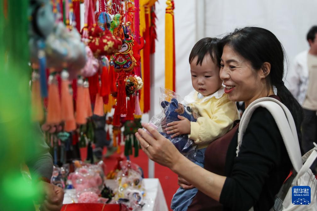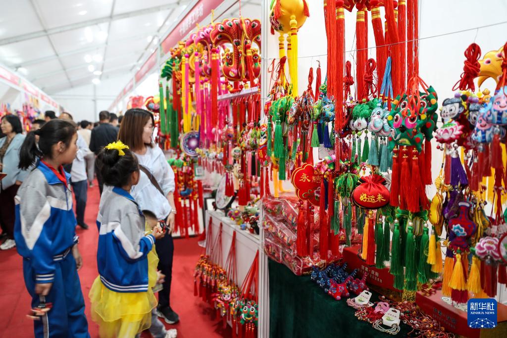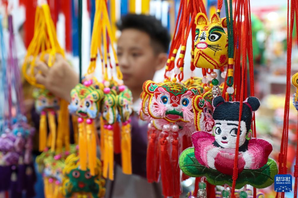 5月29日,市民在慶陽香包民俗文化節(jié)非遺沉浸體驗區(qū)選購香包。新華社記者 郎兵兵 攝