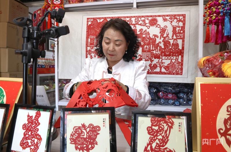 慶陽剪紙傳承人齊秀梅直播展示剪紙創(chuàng)作過程(央廣網(wǎng)發(fā) 盤小美 攝)